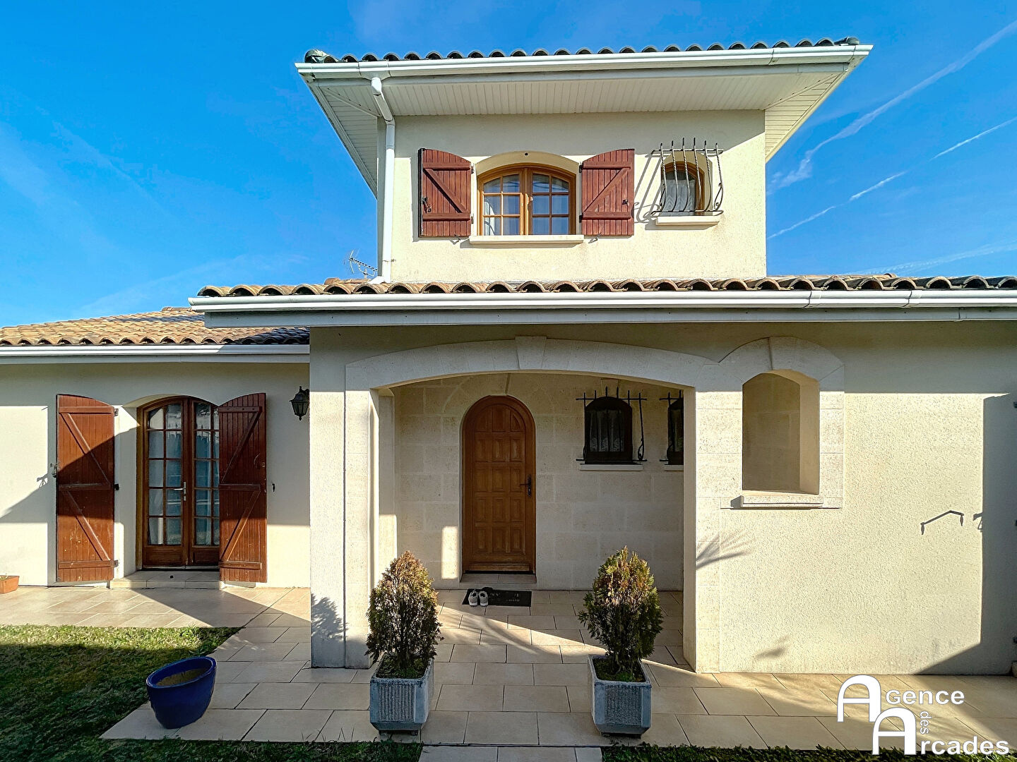 GRANDE MAISON FAMILIALE de caractère, proche Bordeaux, calme et verdure. Située à seulement 20 minutes de Bordeaux et 15 minutes de Saint-André-de-Cubzac, cette belle propriété conjugue espace, luminosité et confort dans un environnement privilégié, à l'abri des regards. Le rez-de-chaussée s'articule autour d'un vaste espace de vie comprenant salon, salle à manger et cuisine ouverte, baigné de lumière grâce à son exposition Est-Ouest et offrant une vue dégagée sur l'espace piscine extérieure. Une suite parentale complète ce niveau, avec salle de bains (douche et baignoire), dressing en mezzanine, ainsi qu'une bibliothèque-salle de jeux au caractère chaleureux. À l'étage, vous trouverez quatre grandes chambres, dont une actuellement aménagée en bureau, ainsi qu'une salle d'eau et un toilette indépendant. Un sous-sol total d'environ 100 m² offre de multiples possibilités : rangements, atelier, salle de sport ou espace loisirs. À l'extérieur, le parc paysager et arboré de près de 2 900 m² accueille une agréable pergola, un car-port et de nombreux stationnements. L'ensemble se distingue par son calme absolu, son absence de vis-à-vis et sa proximité avec toutes les commodités. Une propriété rare sur le secteur, alliant sérénité, espace et élégance. Cette maison peut convenir pour des professions libérales ou associations. ARCADES PROPRIÉTÉS