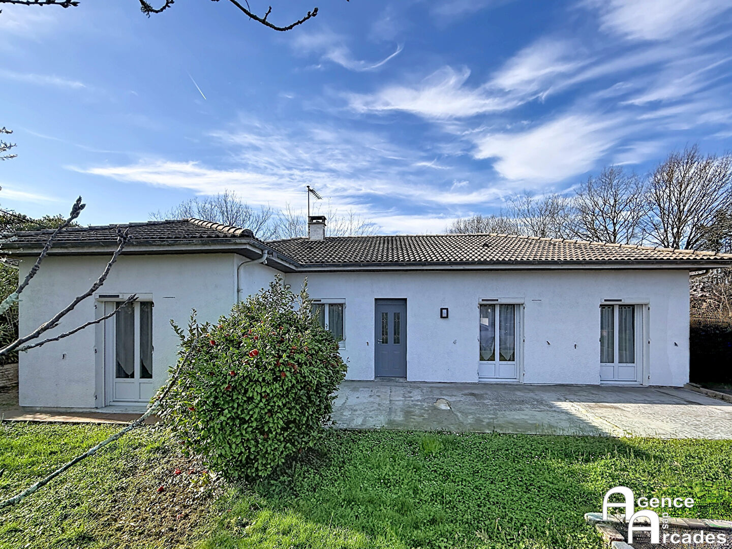 MAISON FAMILIALE avec un très beau jardin. Cette habitation de plain pied comprend une entrée, un espace de vie de plus de 50 m² avec double salon - poêle à bois, salle à manger et cuisine aménagée ouverte, trois chambres, un dressing indépendant, une salle d'eau avec douche à l'italienne, un cellier - buanderie. Une véranda fermée et un garage extérieur de 36 m² complètent ce bien. Secteur très calme sur un beau terrain de plus de 1500 m², proche de toutes les commodités. Idéal pour une famille ou pour une profession libérale - artisanale avec l'aménagement du garage existant. Bien rare sur le secteur. AGENCE DES ARCADES.