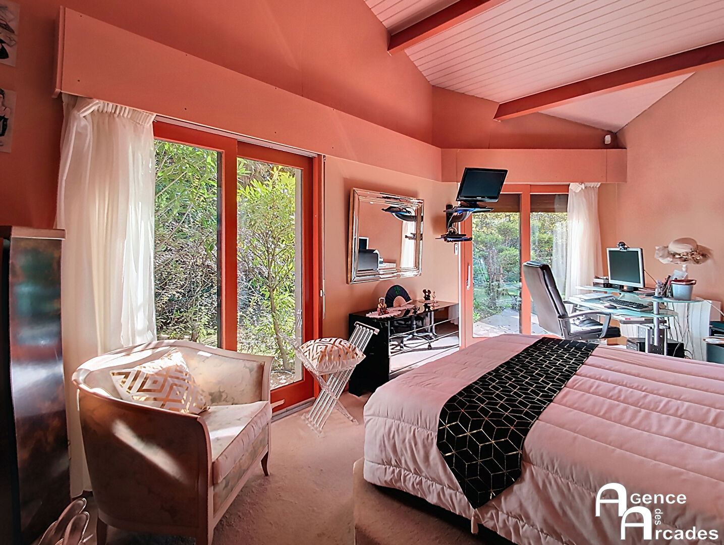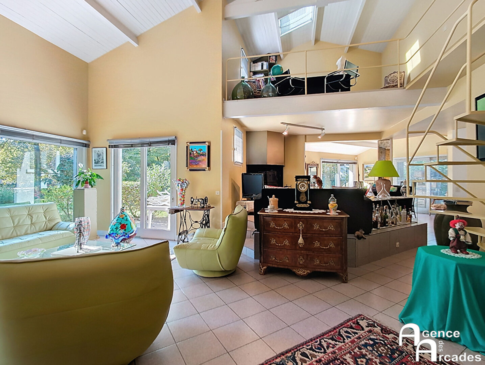 MAISON DE Charme, au coeur de la résidence privée et sécurisée du golf de Cameyrac. Cette élégante maison d'architecte est édifiée sur une parcelle de plus de 2400m², avec jardin paysager et arboré .La maison , de près de 160m² habitables bénéficie d'une luminosité intérieure exceptionnelle de part sa conception en salon décloisonné, son orientation et ses grandes surfaces vitrées. La maison comprend un grand salon -salle à manger avec espace cheminée, une grande mezzanine pour un coin bureau-bibliothèque, une cuisine indépendante et bien équipée avec grand cellier, une suite parentale avec salle de bains privative, une seconde chambre avec sa salle d'eau attenante, un garage et carport. Possibilité d'extension pour création d'espace de vie ou chambres supplémentaires. Environnement très agréable et calme dans la résidence du golf de Cameyrac. Vous pourrez profiter de deux parcours de golf, d'un tennis, d'un centre équestre .. Le domaine sécurisé du Golf de Cameyrac et à seulement 15 kms de Bordeaux et à seulement 3 kms des commerces de proximité, écoles et gare SNCF. Nous aurons à coeur de vous présenter la résidence du Golf et ses 2 golfs que nous connaissons parfaitement . Nous vous invitons à venir nous voir à l'agence ( en face du SUPER U) , ou nous contacter pour cela AGENCE DES ARCADES de ST SULPICE et CAMEYRAC