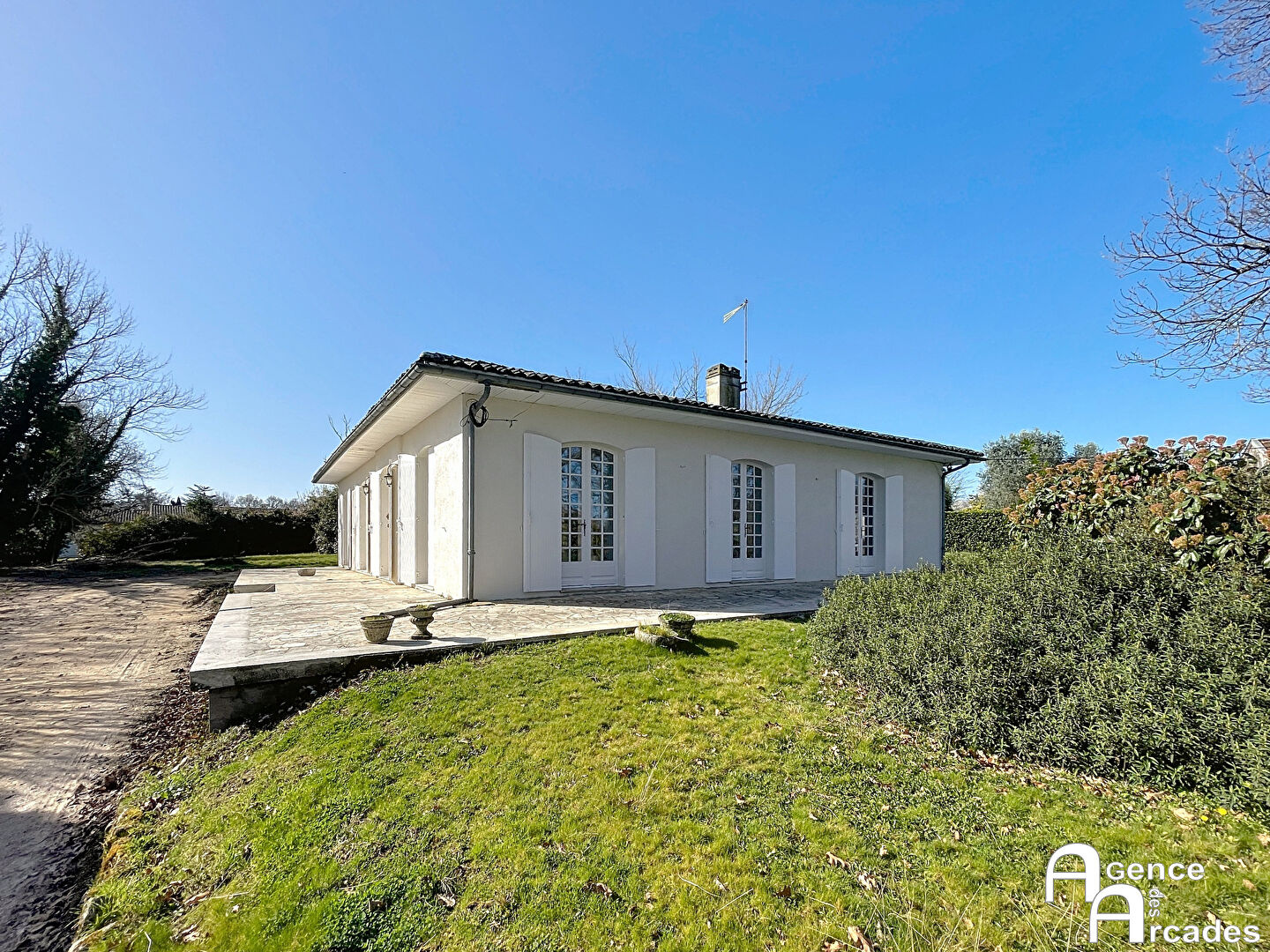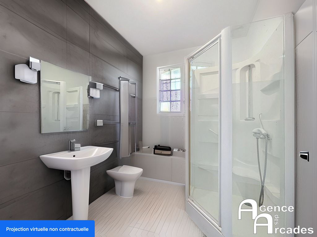 MAISON FAMILIALE RENOVEE de PLAIN PIED comprenant un espace séjour salle à manger avec cheminée, une cuisine neuve fermée avec une arrière cuisine - buanderie - chaufferie, un bureau, trois chambres dont une avec un point d'eau-vasque, une salle de bains, un toilette séparé et un cellier - cave. Quasi l'ensemble des sols et des peintures ont été refaits à neuf ainsi qu'une partie des enduits extérieurs. Ce bien est situé très proche du centre ville et de la gare, commodités à proximité, sur un joli terrain arboré. Certaines photos proposent des aménagements intérieurs (salle de bain). AGENCE DES ARCADES.