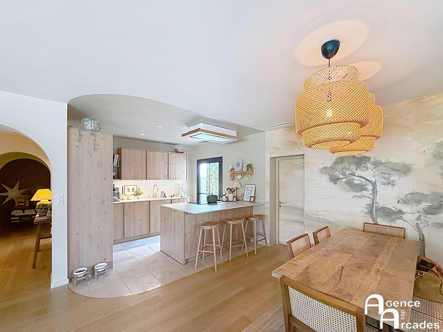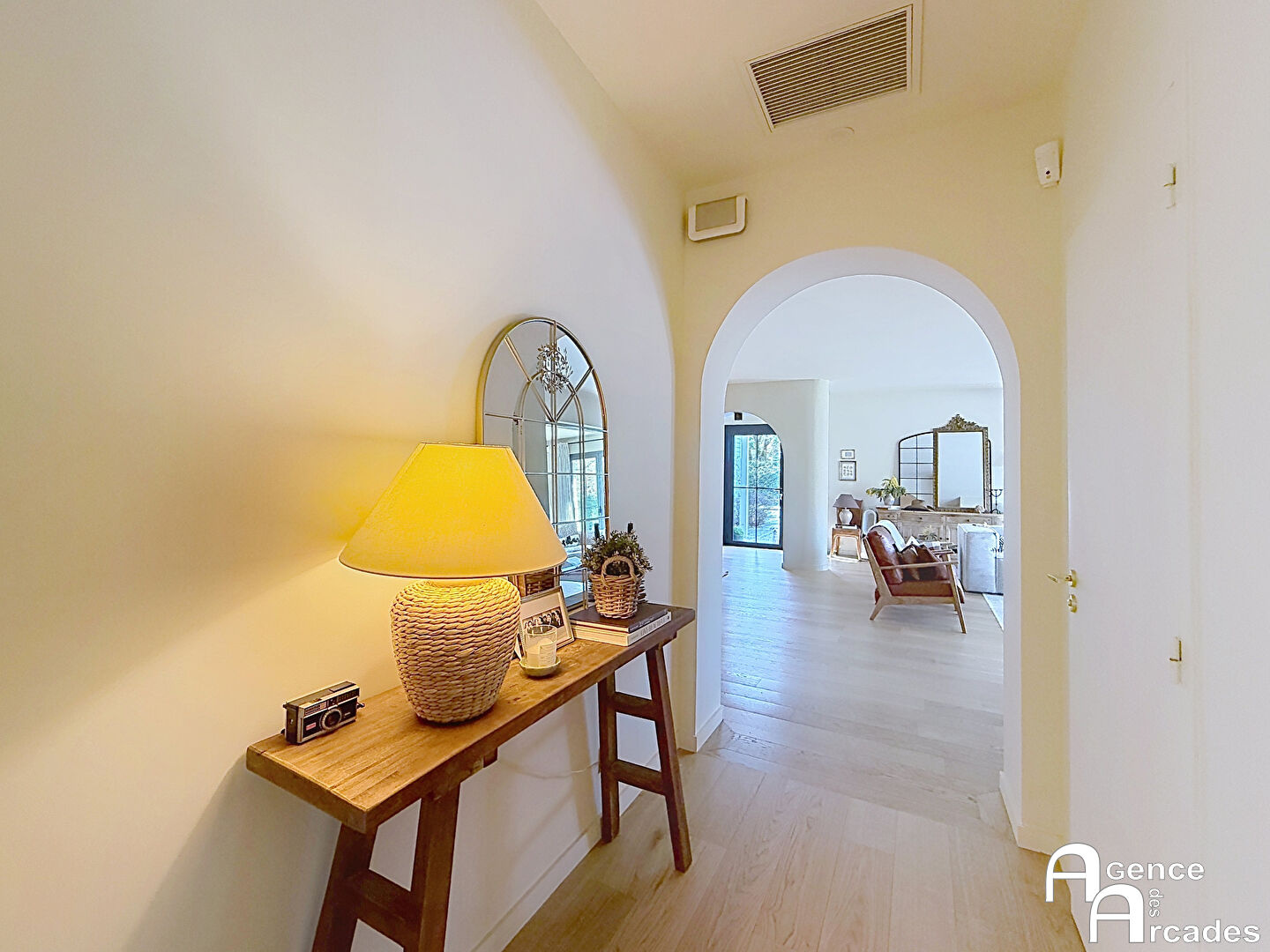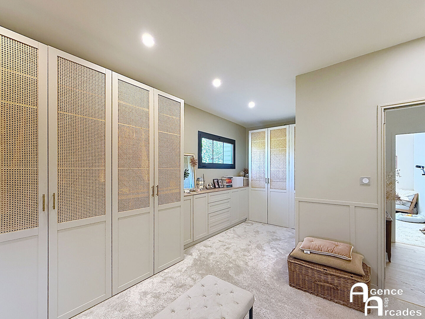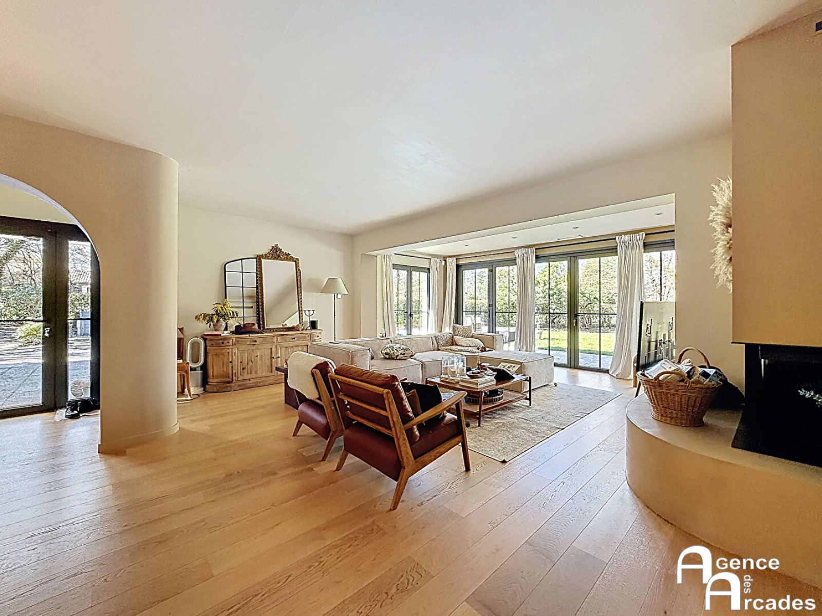TRES BELLE VILLA entièrement rénovée en 2021 par un architecte sur la prestigieuse résidence du Golf de Saint Sulpice et Cameyrac propose un cadre cosy, élégant et contemporain. Cette habitation comprend un espace de vie chaleureux, raffiné et généreux de près de 70 m² avec entrée, salon - salle à manger, cuisine entièrement équipée et récente. Le premier espace nuit est composé de deux chambres dont une chambre parentale avec sa salle d'eau, d'un très beau dressing, d'un bureau-chambre donnant sur la nature, d'une autre grande salle de douche. Puis, vous trouverez un deuxième espace nuit sous forme de dépendance avec sa chambre, sa salle d'eau et ses toilettes séparées. En complément et attenant à la maison, un cellier-buanderie et un grand atelier de plus de 25 m². Un carport pour deux véhicules, une piscine de 40 m² chauffée et sécurisée, une terrasse extérieure complètent ce bien. Prestations de qualité : parquets chêne, travertin, béton ciré, menuiseries Aluminium, PAC réversible, cheminée 14 KWatts, cuisine équipée et aménagée, panneaux solaire. Parc arboré, paysagé et bien proche de toutes les commodités. ARCADES PROPRIETES.