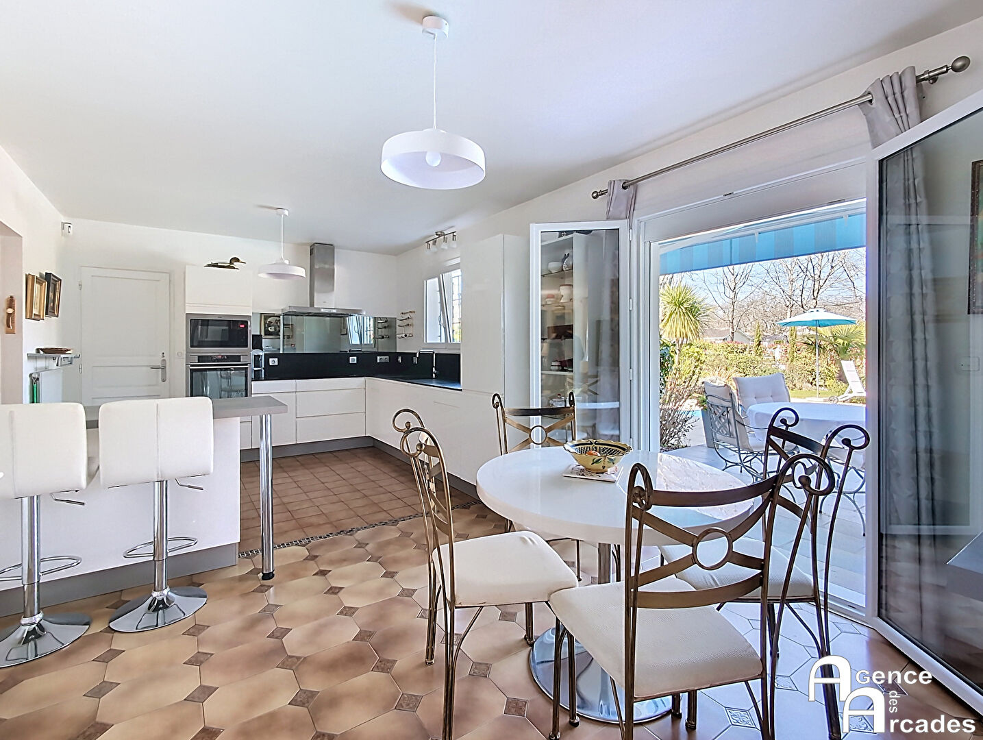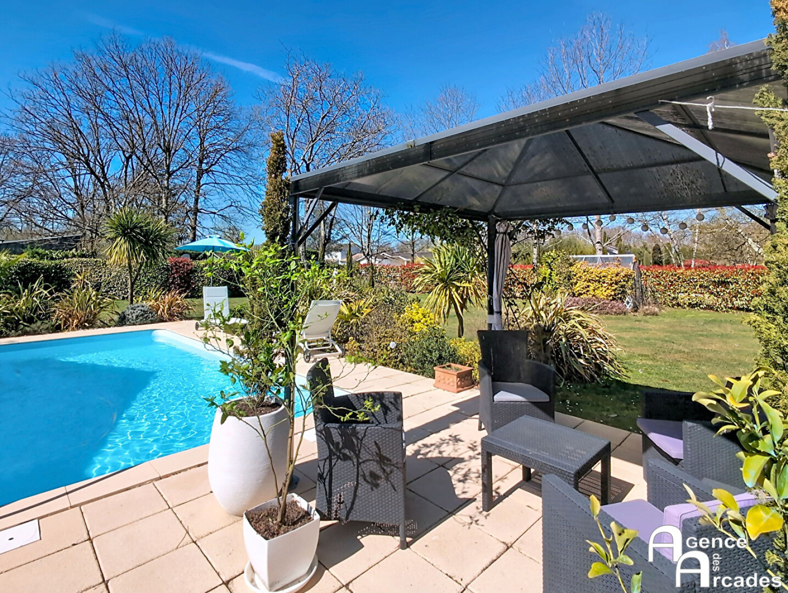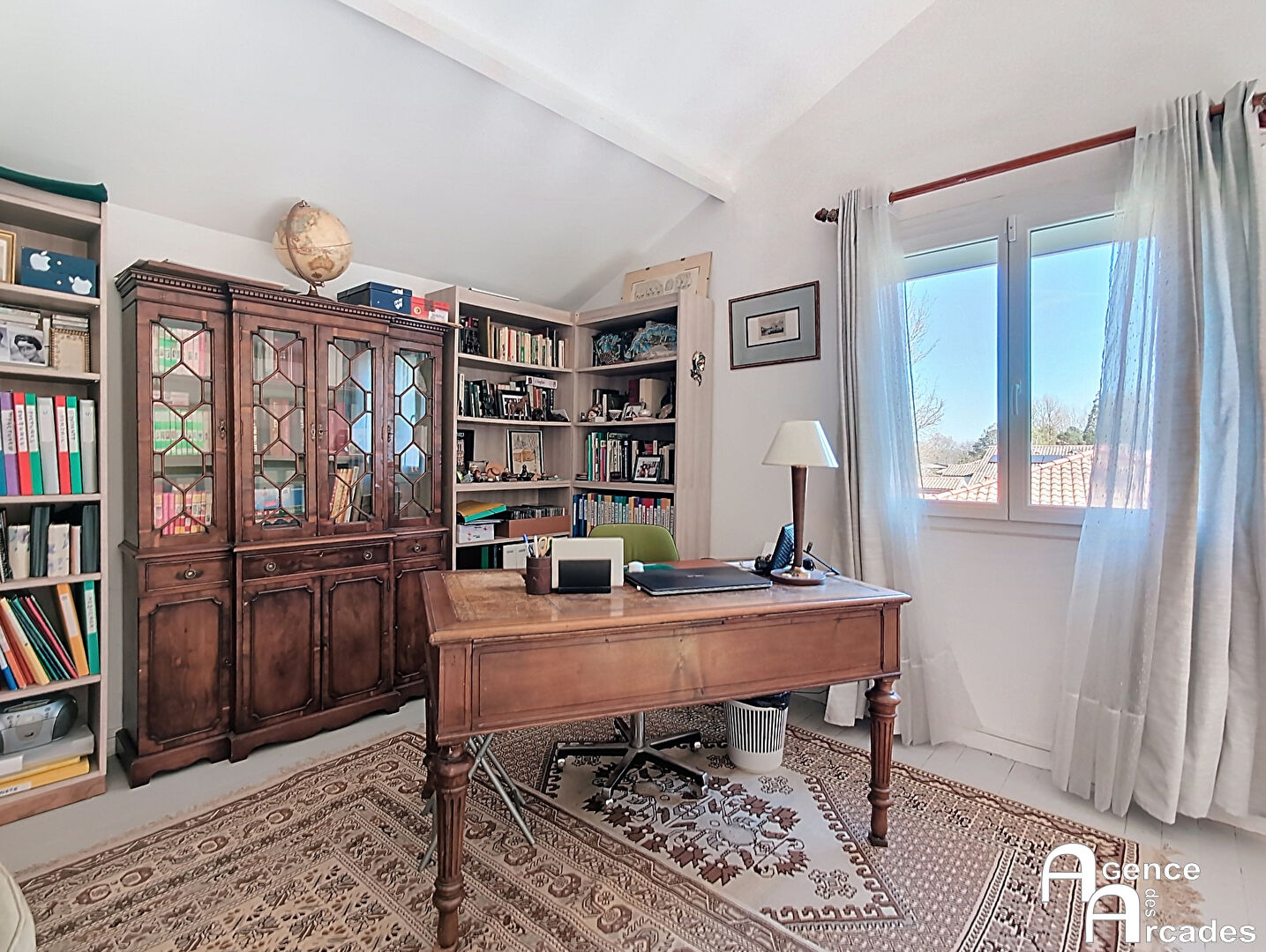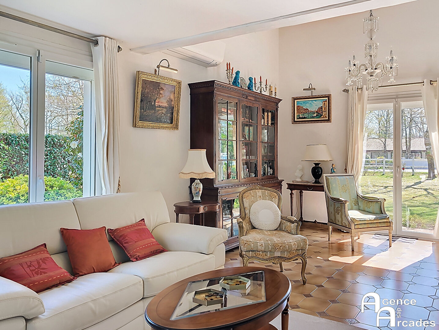 MAISON DE Charme, au coeur de la résidence privée et sécurisée du golf de Cameyrac. Cette élégante maison est édifiée sur une parcelle de près de 2000m², avec jardin paysagé et arboré et espace piscine avec tonnelle d'agrément. La maison aux beaux volumes est en parfait état d'entretien. Elle bénéficie d'une belle entrée, ouvrant sur un vaste séjour avec plafond décloisonné, cheminée et triple exposition et ouvrant sur une agréable véranda chauffée. La cuisine contemporaine dispose d'un coin repas et ouvre directement sur le jardin. La maison dispose de quatre chambres dont une située en rez de chaussée avec sa salle de bains privative et trois chambres à l'étage, une seconde salle de bains et un espace bureau. En complément, une grande buanderie, une salle d'eau complémentaire avec cabine SAUNA. La maison dispose de tout le conforme moderne avec fibre optique, télésurveillance, volets roulants électriques, chaudière à condensation et Pompe à chaleur réversible ( climatisation). Le jardin, véritable havre de paix est composé de massifs de plantes, arbustes méditerranéens, avec arrosage automatique, robot de tonte et abri jardin et serre. Sans aucun vis-à-vis, ni promiscuité. Environnement très agréable et calme dans la résidence du golf de Cameyrac. Vous pourrez profiter de deux parcours de golf, d'un tennis, d'un centre équestre , de commerces et d'une gare à proximité ( à 5 min) . A seulement 15 min de Bordeaux . Exclusivité AGENCE DES ARCADES de ST SULPICE et CAMEYRAC.