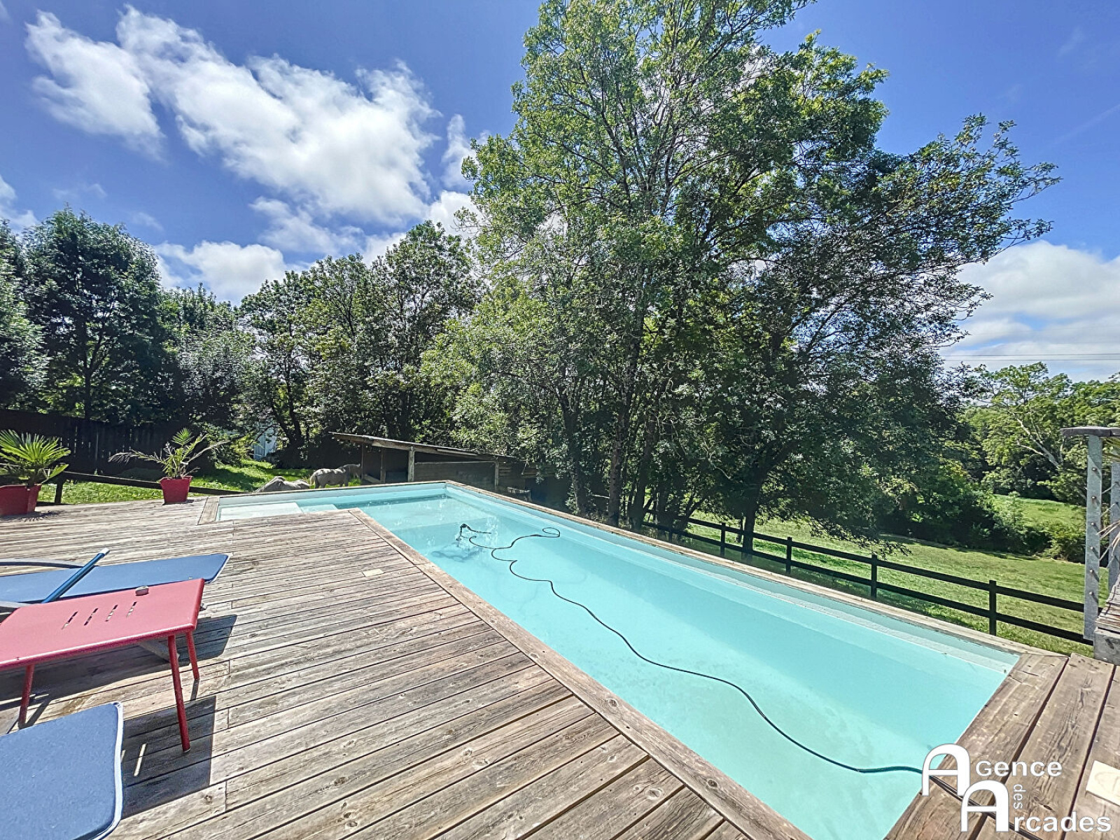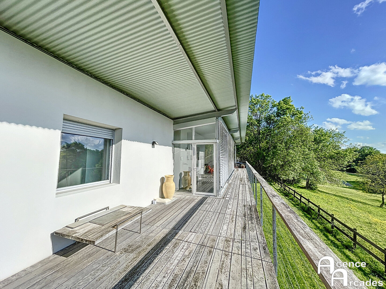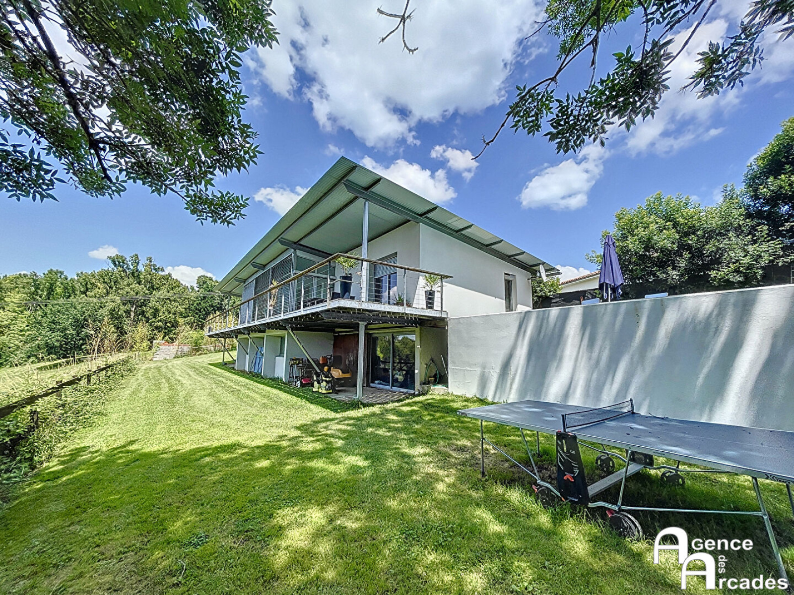 Maison d'architecte d'exception. Cadre naturel et prestige. Dans un secteur calme et paysagé, cette très belle maison d'architecte offre un cadre de vie exceptionnel, alliant design, confort et volumes généreux, sur une propriété remarquable. Le rez-de-chaussée dévoile un vaste espace de vie lumineux de plus de 60 m² avec cheminée, une suite parentale de près de 30 m² avec dressing, salle d'eau et toilette privative, ainsi que deux chambres supplémentaires, une salle d'eau et de nombreux rangements, offrant des espaces fonctionnels et élégants. Au rez-de-jardin, un espace détente modulable, un immense bureau, une autre chambre, un toilette, ainsi qu'une buanderie/chaufferie attenante au garage/atelier de plus de 30 m², offrent de multiples possibilités d'aménagement. Toutes les pièces orientées plein Ouest bénéficient d'une vue exceptionnelle sur la nature environnante, créant une atmosphère apaisante et lumineuse. À l'extérieur, le bien dispose d'un car-port pour plusieurs véhicules, d'une piscine avec terrasse et d'une seconde terrasse de 50 m², parfaite pour profiter des beaux jours en famille ou entre amis. Le parc paysagé peut également accueillir des chevaux, avec deux box présents sur la parcelle, ajoutant une dimension rare et unique à cette propriété. Proche de toutes les commodités, cette demeure représente un équilibre parfait entre nature, confort et élégance architecturale, offrant un bien rare sur le secteur pour une vie familiale raffinée et harmonieuse. Un véritable coup de coeur, dans un cadre naturel d'exception. ARCADES PROPRIÉTÉS.
