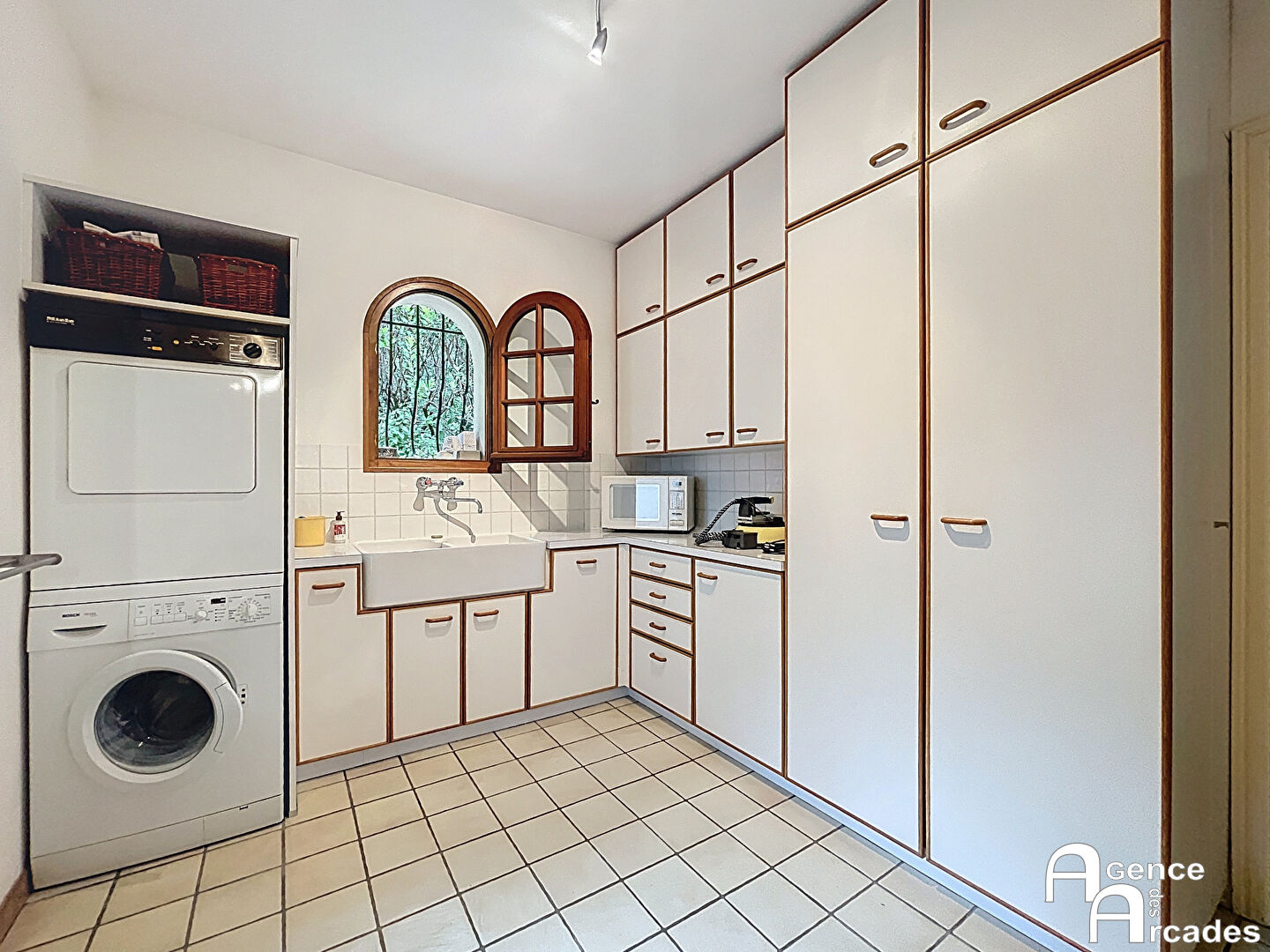 Idéalement située sur la prestigieuse Résidence du Golf de Cameyrac, cette très belle maison allie espace, luminosité et qualité des matériaux, dans un environnement résidentiel calme, élégant, recherché et verdoyant. Le rez-de-chaussée s'articule autour d'un vaste espace de vie de plus de 70 m², comprenant entrée, salon, salle à manger et cuisine semi-ouverte, baigné de lumière naturelle. Ce niveau comprend également deux chambres, dont une bénéficiant d'une grande salle de jeux avec bureau en mezzanine, une salle de bains avec douche et baignoire, ainsi qu'un toilette invité indépendant. À l'étage, vous découvrirez deux belles chambres, dont l'une s'ouvre sur un agréable solarium de 7m², une salle d'eau et un toilette séparé. Les annexes offrent un excellent niveau de fonctionnalité avec une grande buanderie, un cellier, un garage et une cave enterrée. Édifiée dans les années 1980, cette demeure a été conçue avec soin et qualité, et s'inscrit sur un terrain arboré et paysagé de 1 650 m², au calme absolu, à proximité immédiate du golf et de toutes les commodités. Une maison de charme, spacieuse et élégante, coup de coeur assuré. ARCADES PROPRIÉTÉS