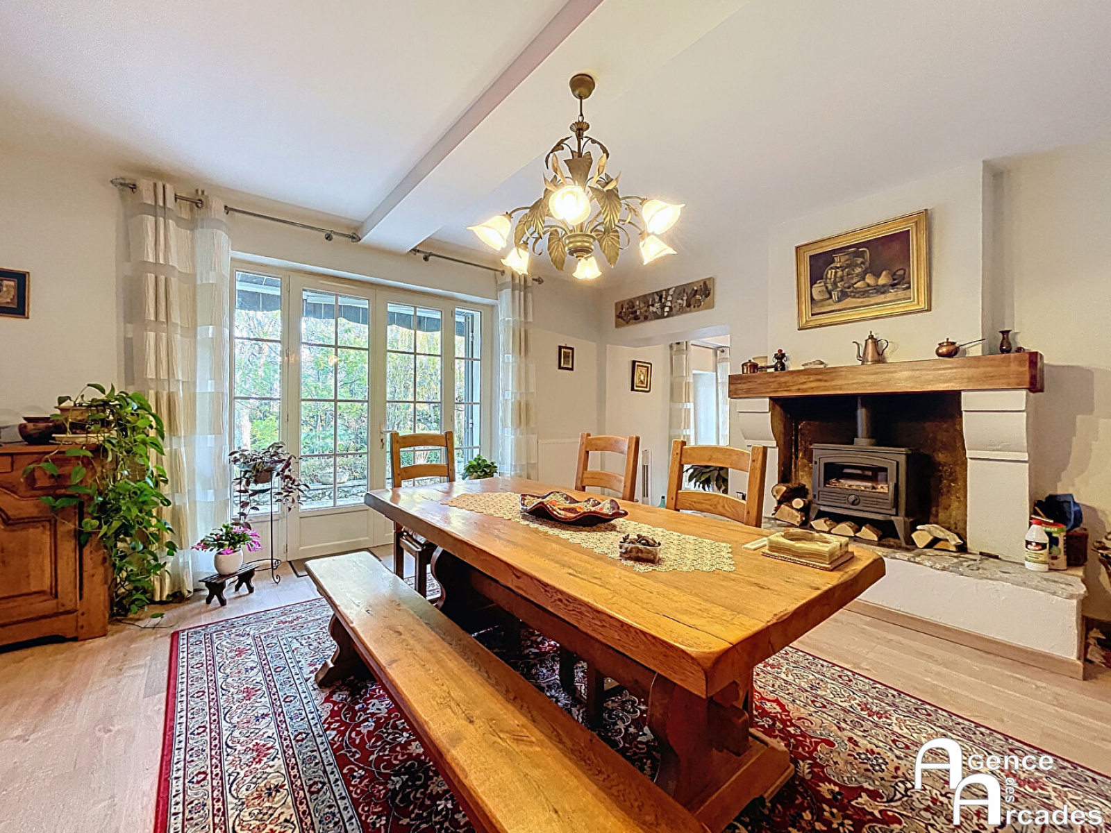 Magnifique maison en pierre des années 1900 située entre Castillon la Bataille et Bergerac, à 7 kms de Ste Foy la Grande, sur un très beau jardin arboré et paysagé. Cette maison possède au rez de chaussée un très grand espace de vie avec salon-salle à manger-cuisine et des celliers attenants, espace très cosy et agréable autour d'une cheminée avec poêle à bois, un bureau pouvant être transformé en chambre, un toilette invité, une véranda chauffée et une buanderie. A l'étage, vous trouverez trois chambres dont une de plus de 25 m², une salle de bains et un toilette. A l'extérieur, dans un endroit confidentiel, une belle piscine de 32 m² avec volet roulant sécurisé et son local technique ainsi qu'un garage avec des appentis complètent cette belle habitation. Un havre de paix avec de belles prestations, menuiseries Alu et PVC double vitrages, matériaux de qualité. Bien rare. AGENCE DES ARCADES
