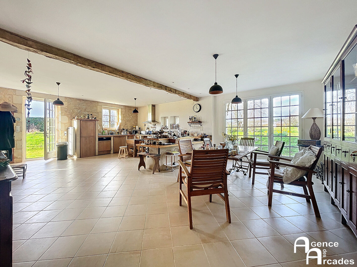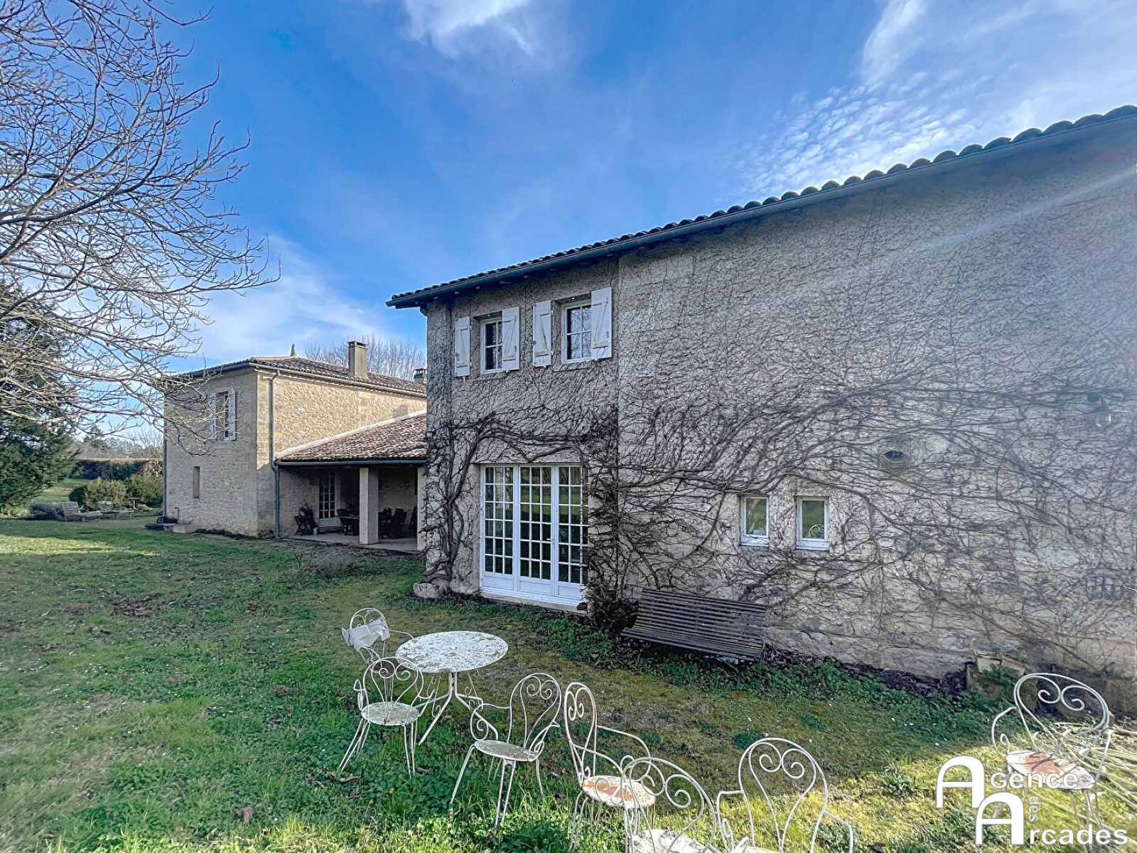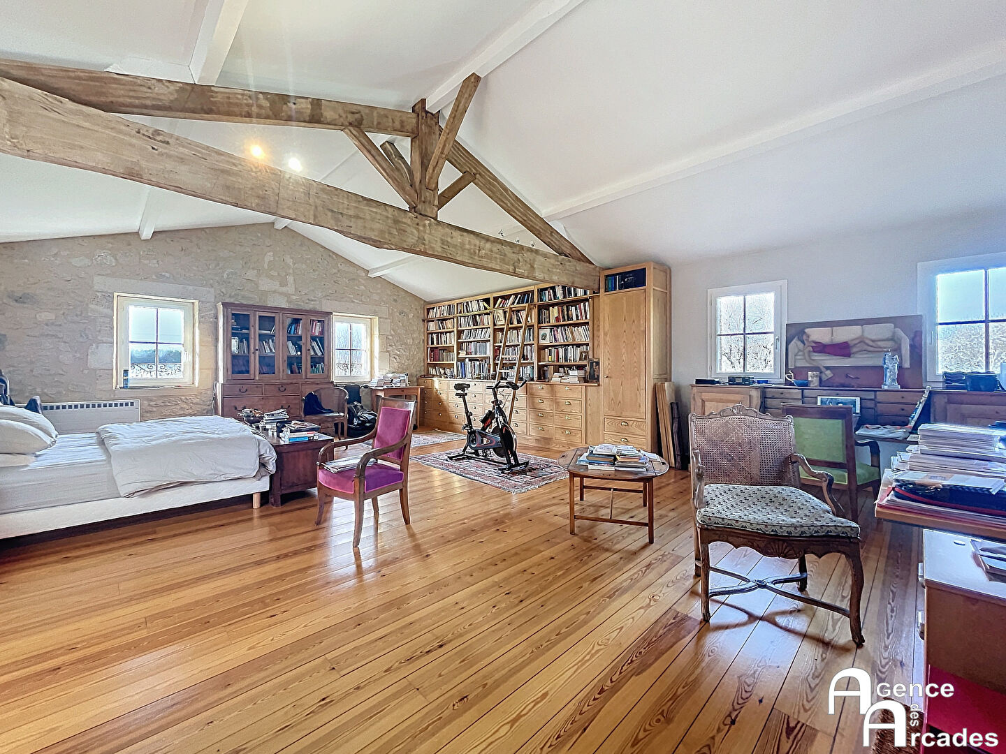 TRES BELLE DEMEURE FAMILIALE en PIERRE DE TAILLE des années 1800. Cette propriété se compose de trois maisons sur deux niveaux (ailes EST, OUEST et SUD) qui peuvent être dissociées pour en faire un projet d'hôtes ou de gîtes. Vous trouverez en rez de chaussée des espaces de vies avec divers salons et bureaux, des séjours - salle à manger, des cuisines mais aussi des espaces nuit avec des chambres et salles de bains ou salles d'eau. A l'étage, de. nombreuses chambres avec salle de bains et salles d'eau, des espaces bureaux, bibliothèque et diverses pièces. L'ensemble de ce domaine comprend 11 chambres, divers salons et salles TV pouvant être aménagés en chambres complémentaires, des espaces de vie privatifs ainsi qu'un espace chaufferie. Les trois maisons communiquent entre elles par des couloirs et paliers mais peuvent être entièrement indépendantes les unes des autres par des doubles portes. A l'extérieur, sur un terrain clos de plus de 9000 m², arboré et paysagé avec de magnifiques arbres dont de nombreux fruitiers, une piscine de 100 m² avec son local technique en pierre, un boulodrome, des terrasses extérieures. Bien entièrement rénové par les actuels propriétaires. Secteur privilégié au sein de la nature, agréable et calme, proche des commodités. Bien rare. ARCADES PROPRIETES.