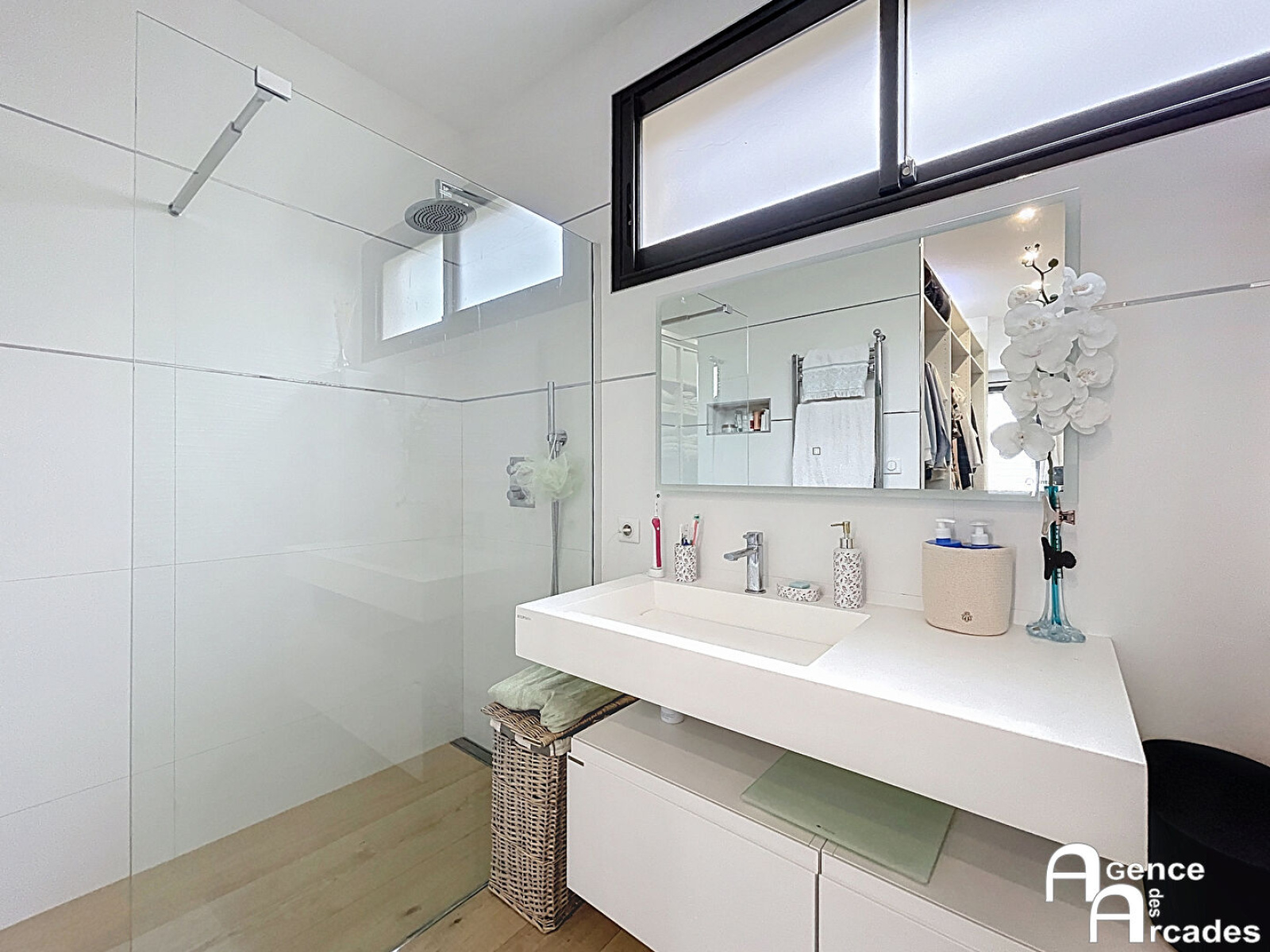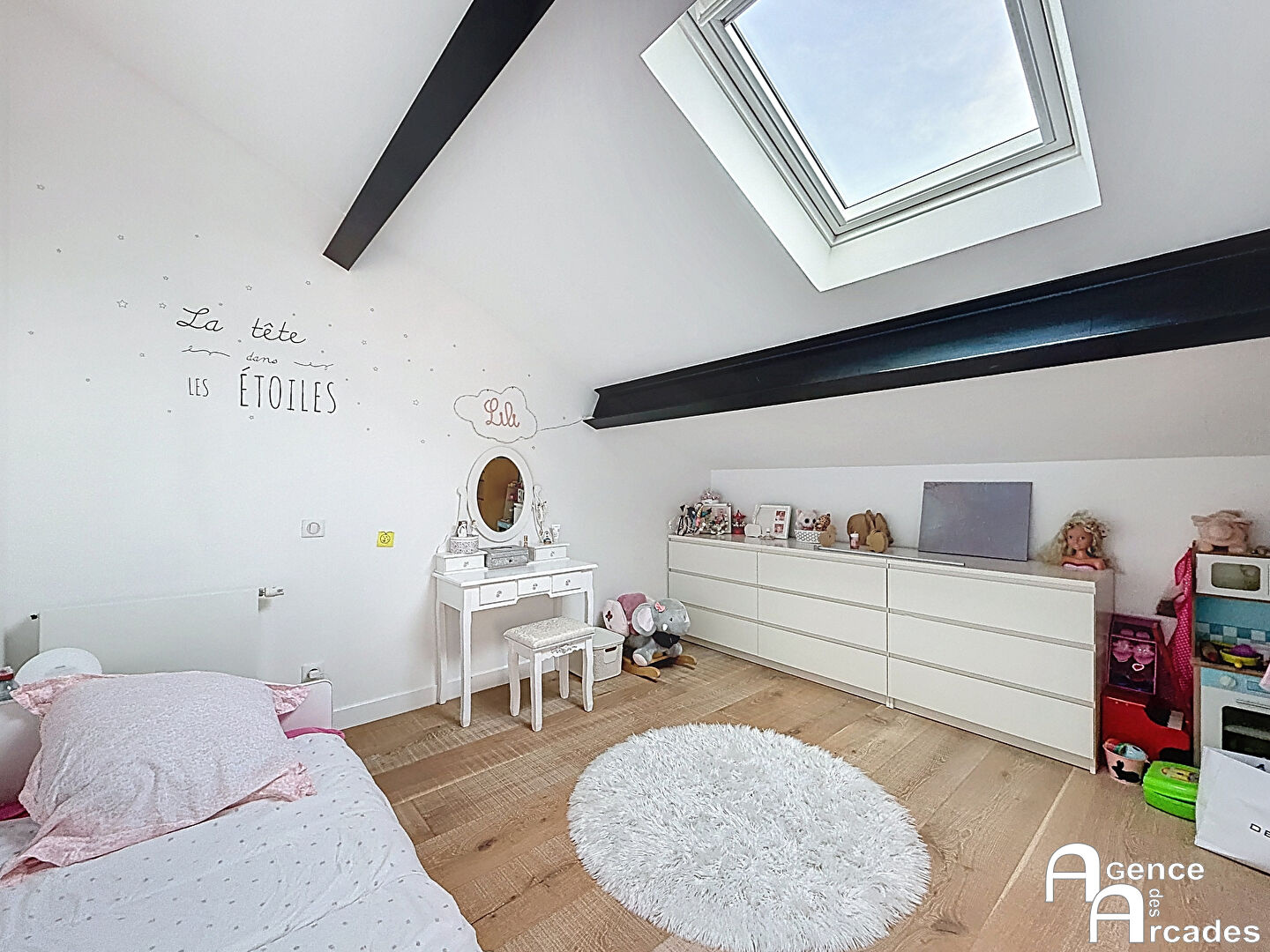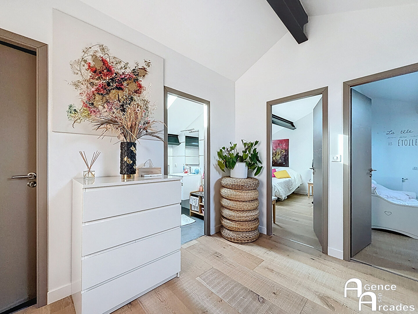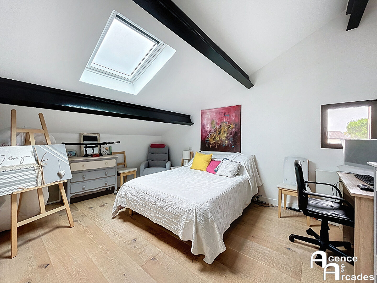 Maison de ville d'exception en pierre entièrement rénovée, offrant des prestations haut de gamme et un confort absolu dans un environnement privilégié. Dès l'entrée, une élégante pièce de vie baignée de lumière dévoile des volumes généreux, sublimés par une cuisine ouverte aménagée et entièrement équipée, prolongée par une cheminée au gaz apportant chaleur et raffinement. Le rez-de-chaussée accueille une somptueuse suite parentale avec dressing sur mesure et salle d'eau privative, ainsi qu'un cellier-buanderie fonctionnel et des toilettes indépendantes. À l'étage, deux chambres mansardées aux lignes épurées s'accompagnent d'un espace bureau ou salle de jeux, idéal pour conjuguer vie familiale et télétravail, ainsi qu'une salle de bains élégante et des toilettes séparées. À l'extérieur, un double garage entièrement carrelé avec porte automatique complète ce bien rare. Dotée d'équipements technologiques de pointe, l'habitation bénéficie d'un système de domotique, d'une alarme, de menuiseries aluminium à double vitrage, d'une climatisation réversible sur les deux niveaux ainsi que d'un chauffage au gaz de ville. Les matériaux nobles et les finitions soignées confèrent à l'ensemble une signature résolument contemporaine et raffinée. Surface au sol de 130 m² (110 m² carrez). Un bien d'exception, idéalement situé à proximité immédiate de toutes les commodités. AGENCE DES ARCADES.