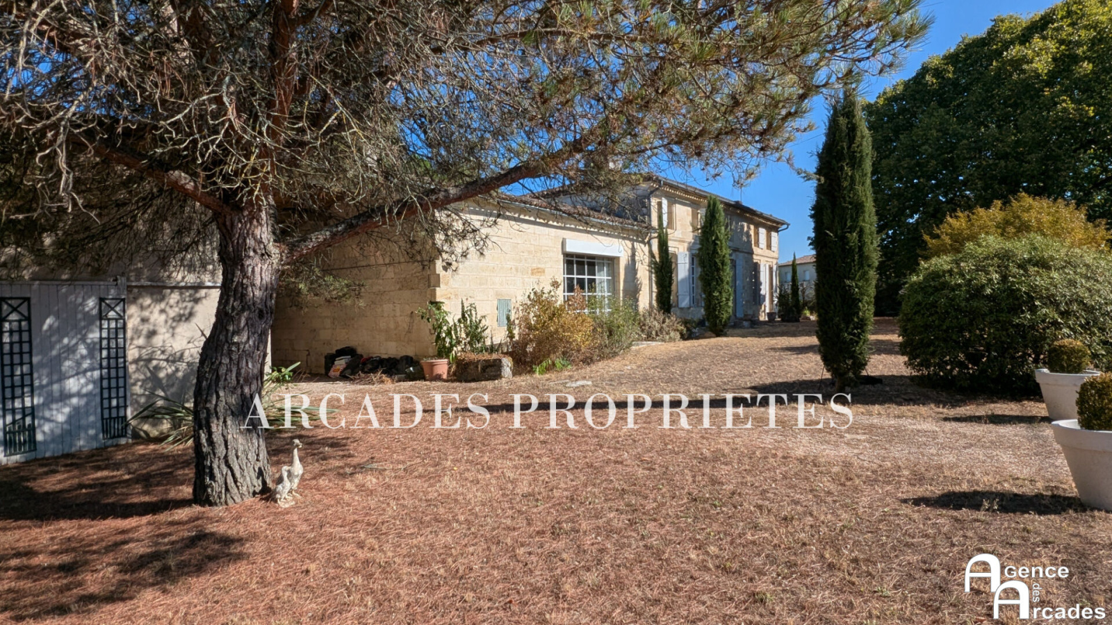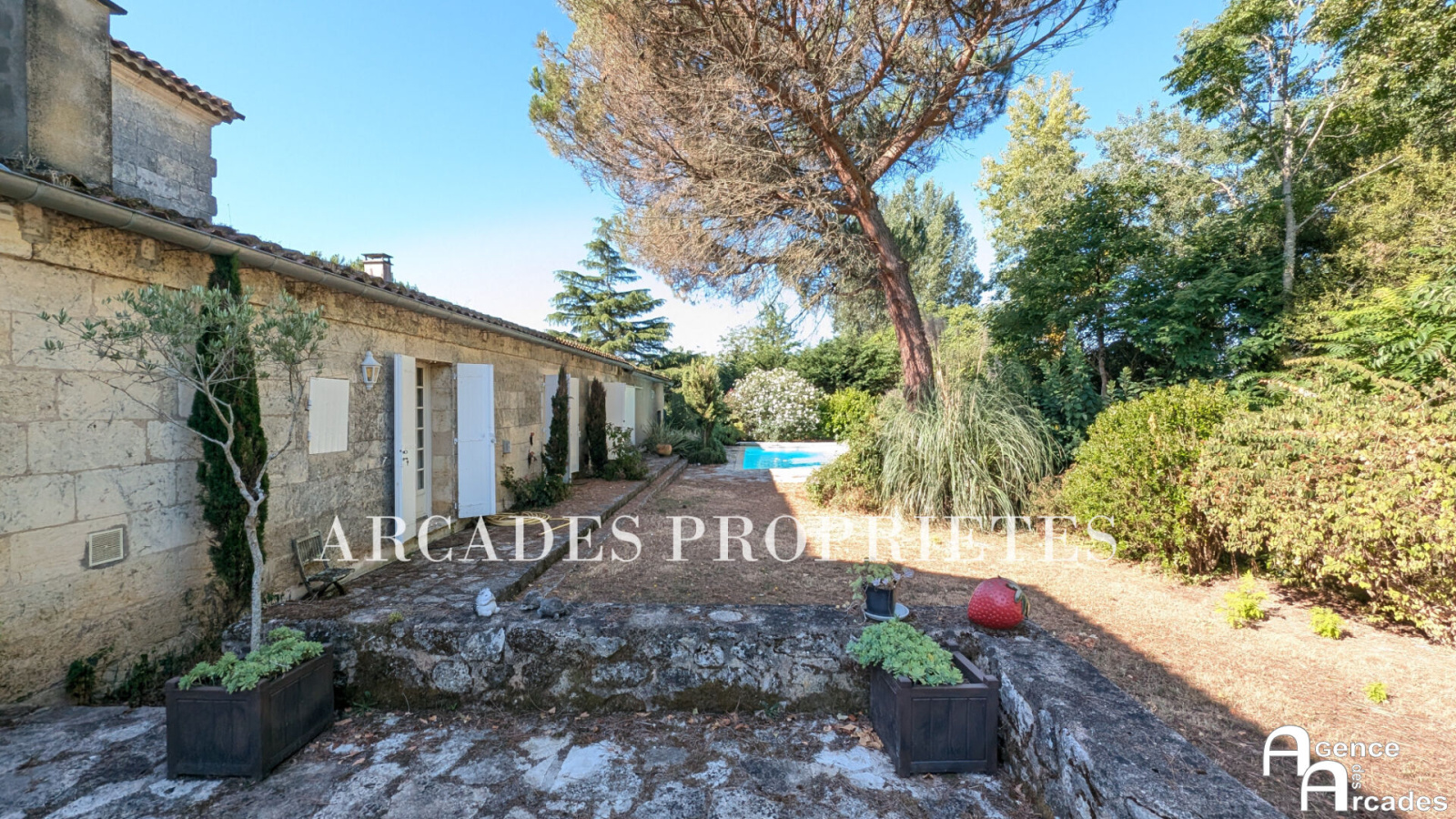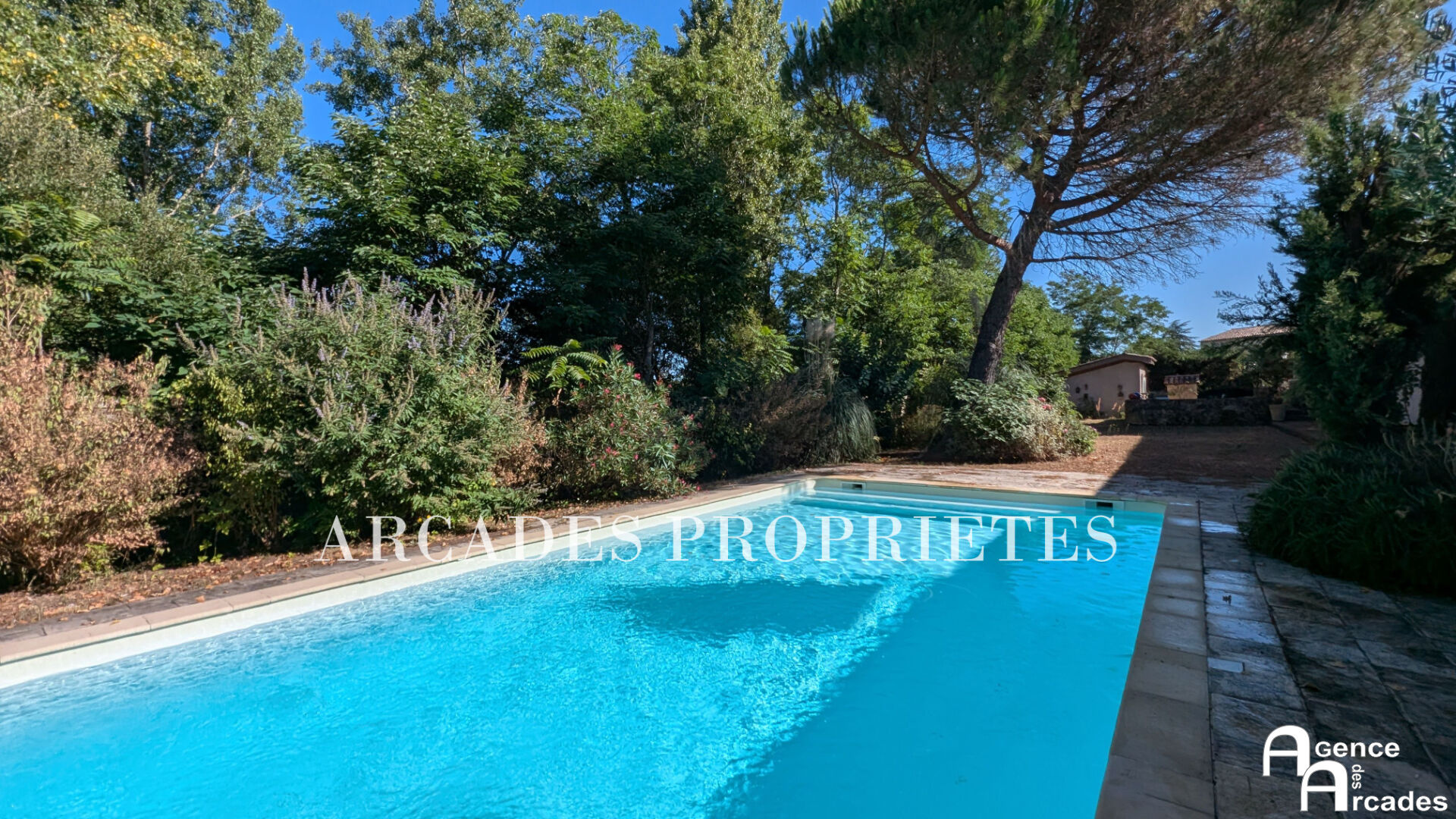MAISON DE MAITRE EN PIERRE de plus de 300m² habitables édifiée sur un parc arboré . La demeure dispose d'une vaste entrée, suivi d'un grand salon avec cheminée , très lumineux grâce à ses grandes ouvertures vitrées,, d'un second salon plus intime et d'une salle à manger en enfilade. La cuisine fonctionnelle se prolonge sur une agréable terrasse offrant une luminosité et une vue dégagée sur le parc. Au rez-de-chaussée également deux chambres sont aménagées en suites , offrant un confort optimal. À l'étage, un palier dessert trois grandes chambres mansardées. La propriété dispose également d'un grand porche couvert de près de 50m² et d'un vaste garage. A l'abri des regards , le parc est aménagé avec des terrasse en pierre, végétation méditerranéenne et piscine parfaitement intégrée dans cet espace de détente. Agence ARCADES PROPRIETES.