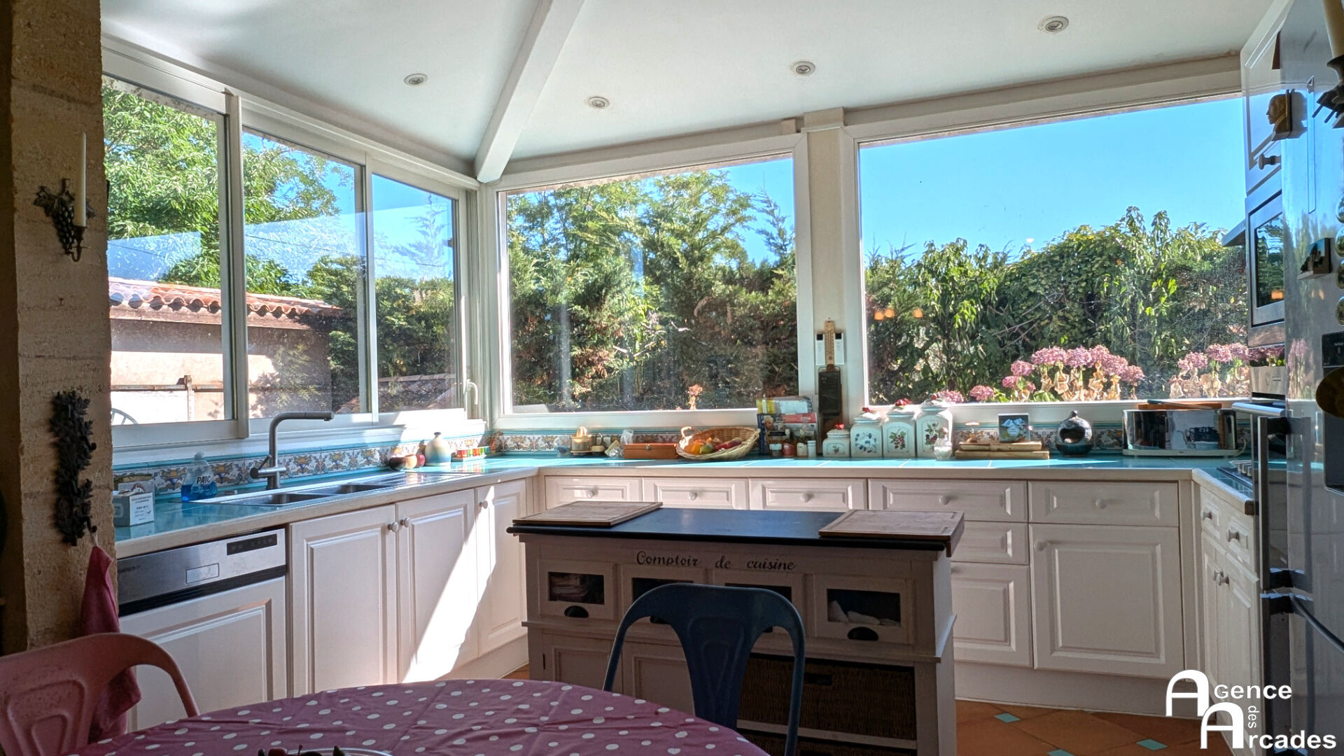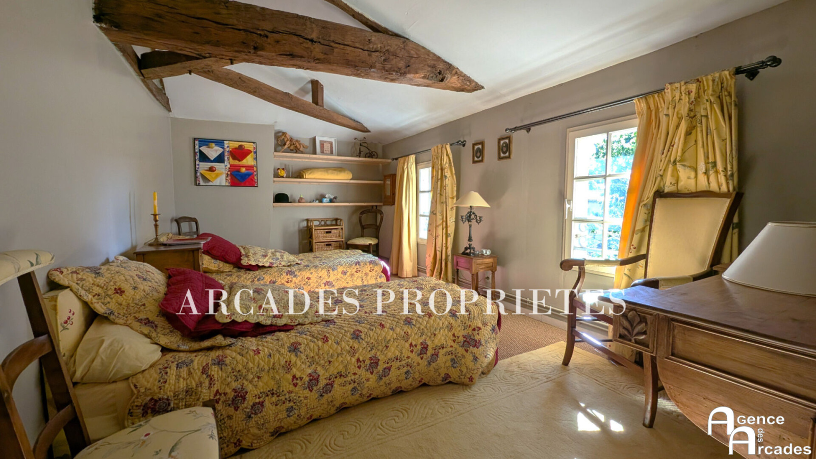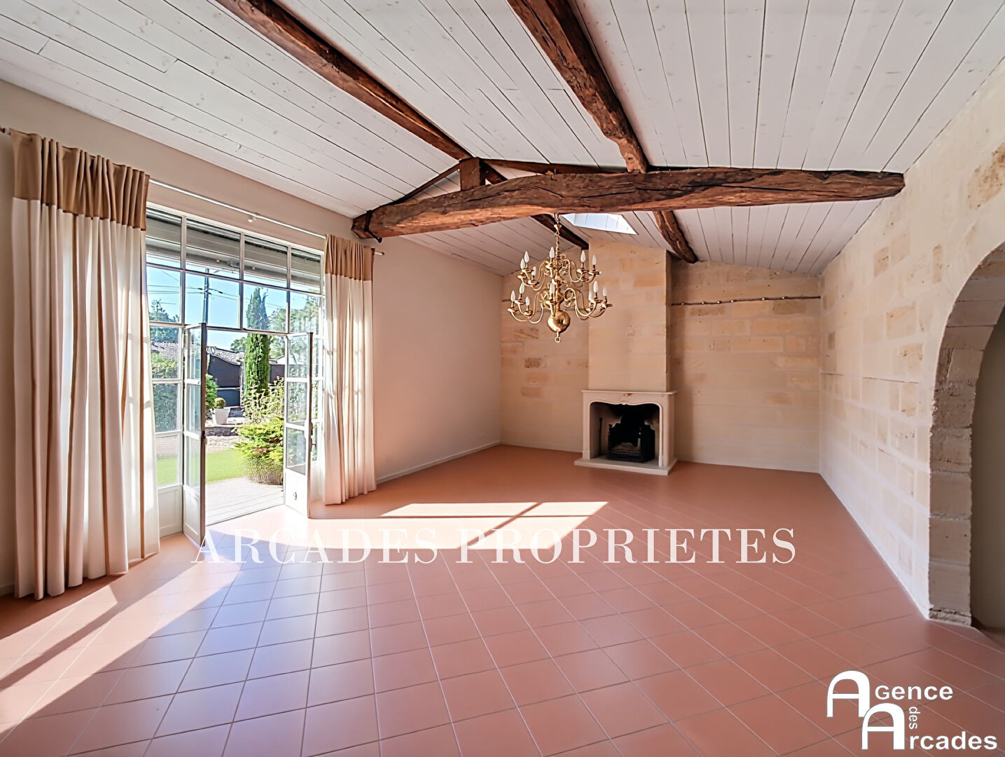 MAISON DE MAITRE EN PIERRE de plus de 300m² habitables édifiée sur un parc arboré . La demeure dispose d'une vaste entrée, suivi d'un grand salon avec cheminée , très lumineux grâce à ses grandes ouvertures vitrées,, d'un second salon plus intime et d'une salle à manger en enfilade. La cuisine fonctionnelle se prolonge sur une agréable terrasse offrant une luminosité et une vue dégagée sur le parc. Au rez-de-chaussée également deux chambres sont aménagées en suites , offrant un confort optimal. À l'étage, un palier dessert trois grandes chambres mansardées. La propriété dispose également d'un grand porche couvert de près de 50m² et d'un vaste garage. A l'abri des regards , le parc est aménagé avec des terrasse en pierre, végétation méditerranéenne et piscine parfaitement intégrée dans cet espace de détente. Agence ARCADES PROPRIETES.