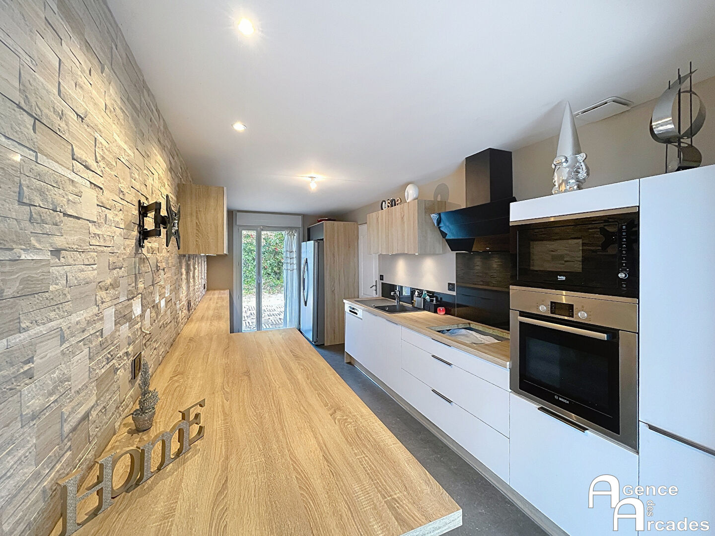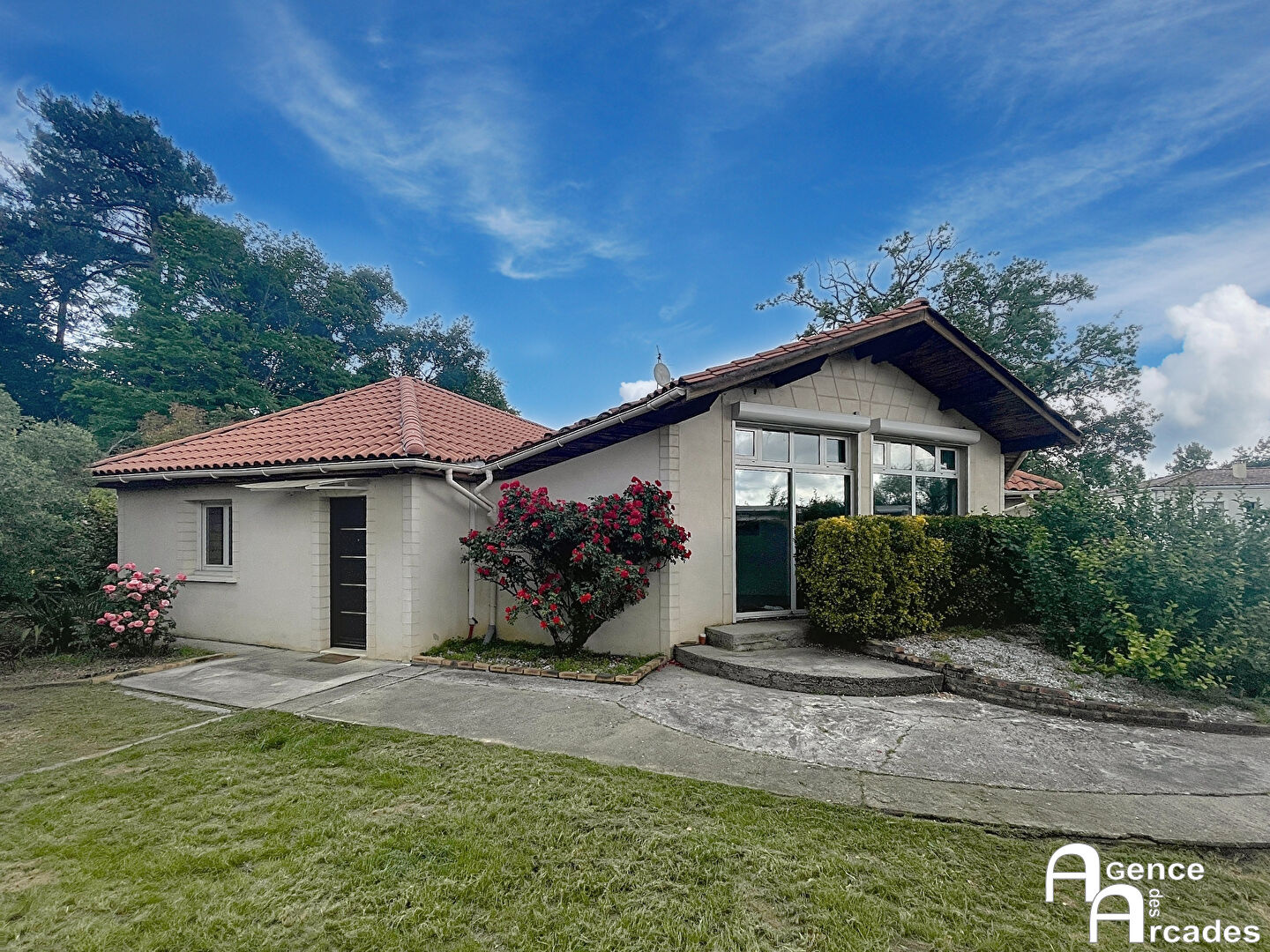 MAISON DE PLAIN PIED de plus de 166 m² comprenant un espace de vie de plus de 65 m² (séjour - salon - cuisine ouverte), un grand espace parental avec chambre, salle d'eau, dressing et bureau, trois autres chambres, une salle de bains. Un garage, un cellier-buanderie, une cave en sous sol avec monte charge complètent ce bien. A l'extérieur, vous trouverez un jardin arboré, une cuisine d'été avec barbecue. Climatisation réversible dans l'espace de vie. Réseau d'assainissement individuel conforme et neuf réalisé en 2024. Proche des axes routiers, des écoles, des commerces et des commodités. AGENCE DES ARCADES.