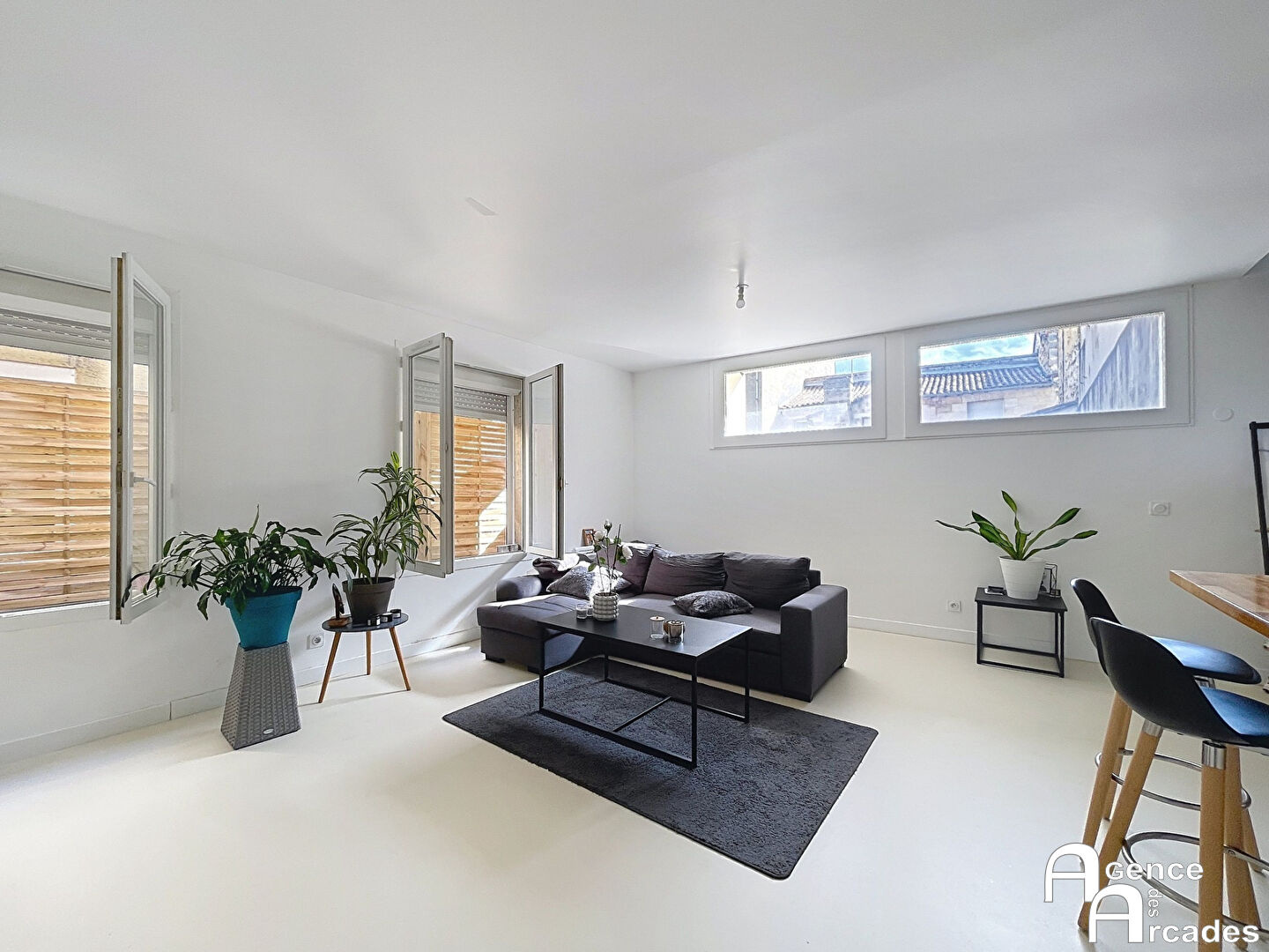 TRES BEL APPARTEMENT DUPLEX T3 avec terrasse au 1er étage d'une petite résidence de 6 lots. Celui-ci comprend un grand espace de vie de plus de 32 m² avec une entrée avec placards, une cuisine ouverte - salon - séjour, un toilette. Puis à l'étage, deux chambres, une salle de bains et un espace bureau ouvert. Un petit extérieur complète ce bien. Appartement très lumineux, idéalement placé et proches de toutes les commodités, des commerces de proximité et des transports (Tram B, C et Bus). Secteur Les Chartrons avec possibilité d'une place de parking sécurisée en sus du prix (nous consulter). Cet appartement se situe dans un environnement très calme, donnant sur un patio entre bâtiments. AGENCE DES ARCADES.