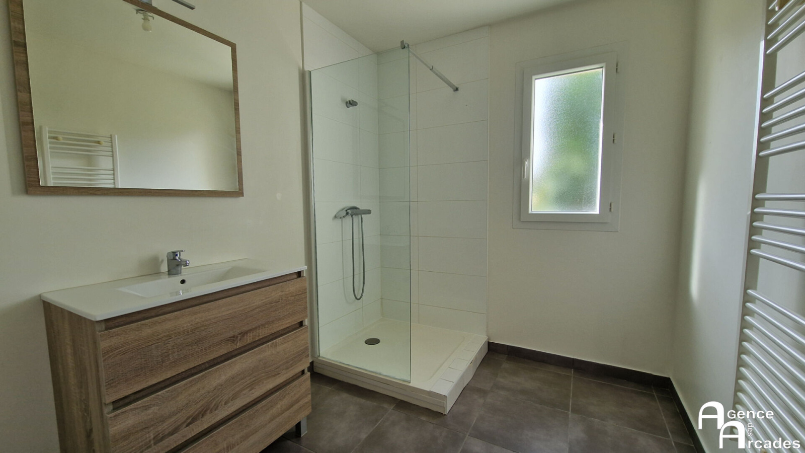 MAISON INDIVIDUELLE FAMILIALE de 2016, idéalement située au calme dans la commune de VAYRES sur un terrain clos comprenant une entrée, une salle de bains, toilette séparé, trois chambres une pièce de vie très lumineuse donnant sur le jardinet, une cuisine équipée ouverte attenante à la salle à manger, une buanderie, ainsi qu'un garage. Exposée sud-est. Aucun travaux à prévoir.EXCLUSIVITE AGENCE DES ARCADES