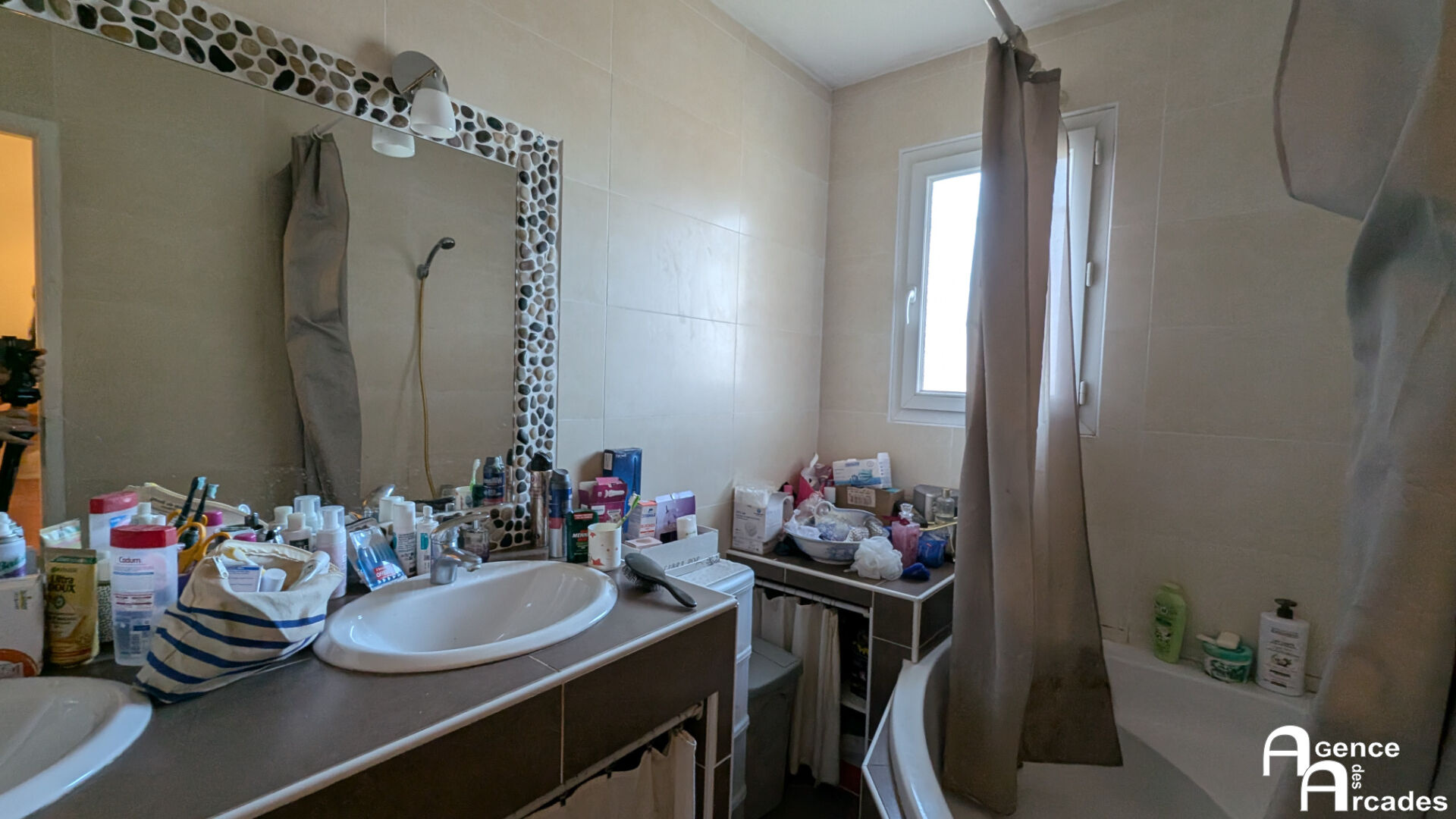 MAISON INDIVIDUELLE FAMILIALE idéalement située au calme dans la commune de IZON sur un terrain clos comprenant une entrée, une salle de bains, toilette séparé, quatre chambres une pièce de vie donnant sur le jardinet, une cuisine équipée ouverte attenante à la salle à manger, une buanderie, ainsi qu'un vaste bureau avec une baie vitrée. Stationnement privé. AGENCE DES ARCADES