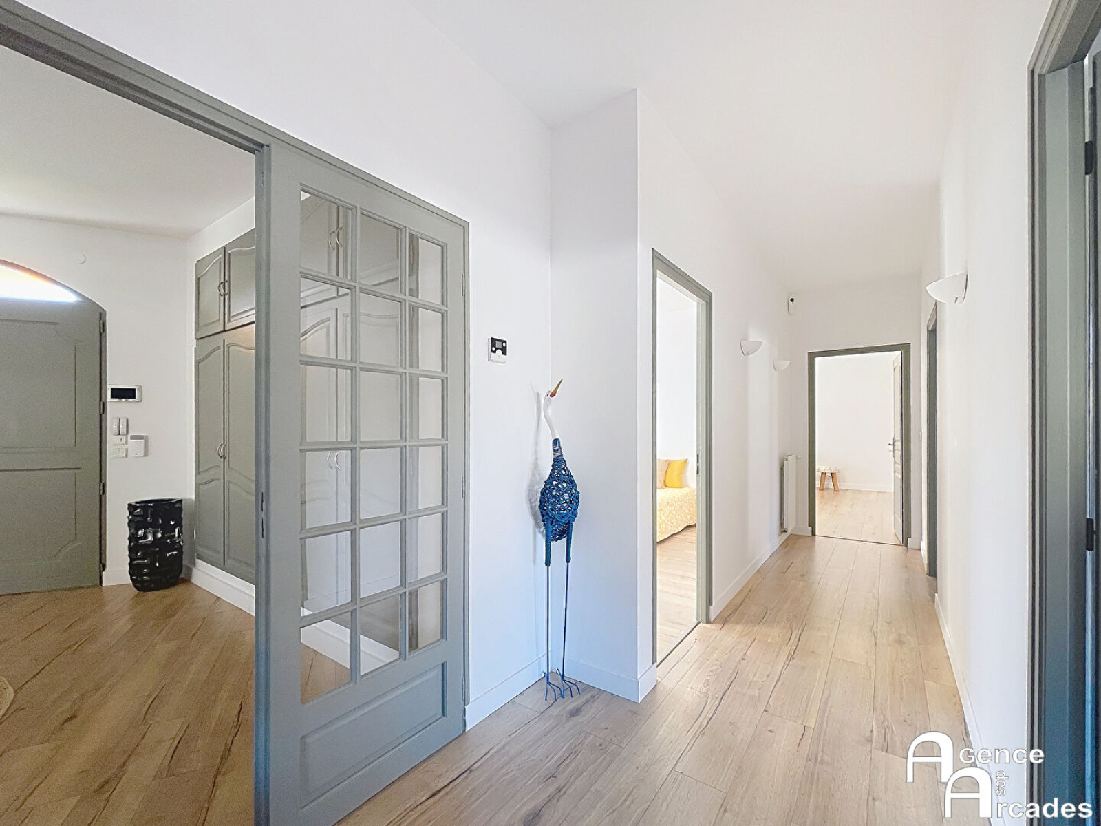 SUPERBE MAISON CONTEMPORAINE de 228 m² avec piscine, confort et tranquillité. Laissez-vous séduire par cette magnifique maison contemporaine, entièrement rénovée en 2023, offrant des prestations haut de gamme et un cadre de vie exceptionnel. Dès l'entrée, spacieuse et élégante, le ton est donné : volumes généreux et lumière omniprésente. Le vaste espace de vie de près de 100 m² accueille un salon convivial avec sa cave murale intégrée, un séjour lumineux, une cuisine ouverte moderne et fonctionnelle ainsi qu'un cellier attenant pour plus de praticité. Côté nuit, la maison dispose de quatre chambres, dont une suite parentale avec salle d'eau privative et dressing, une salle de bains, plusieurs toilettes. Cette habitation possède de nombreux équipements dernière génération : pompe à chaleur air/eau pour un confort optimal, menuiseries aluminium double vitrage, volets roulants électriques avec domotique, alarme et portail motorisé pour la sécurité et le confort. À l'extérieur, profitez d'un terrain clos de 1000 m² environ, parfaitement arboré avec ses oliviers et sa piscine chauffée au sel. Les pelouses sont entretenues par deux robots tondeuses et plusieurs celliers extérieurs permettent le rangement du matériel et des outils. Le tout dans un environnement calme et agréable, en deuxième ligne, sans aucun vis-à-vis. Un bien rare, alliant modernité, confort et sérénité, idéal pour une famille ou pour recevoir en toute convivialité. Coup de coeur assuré. ARCADES PROPRIETES.