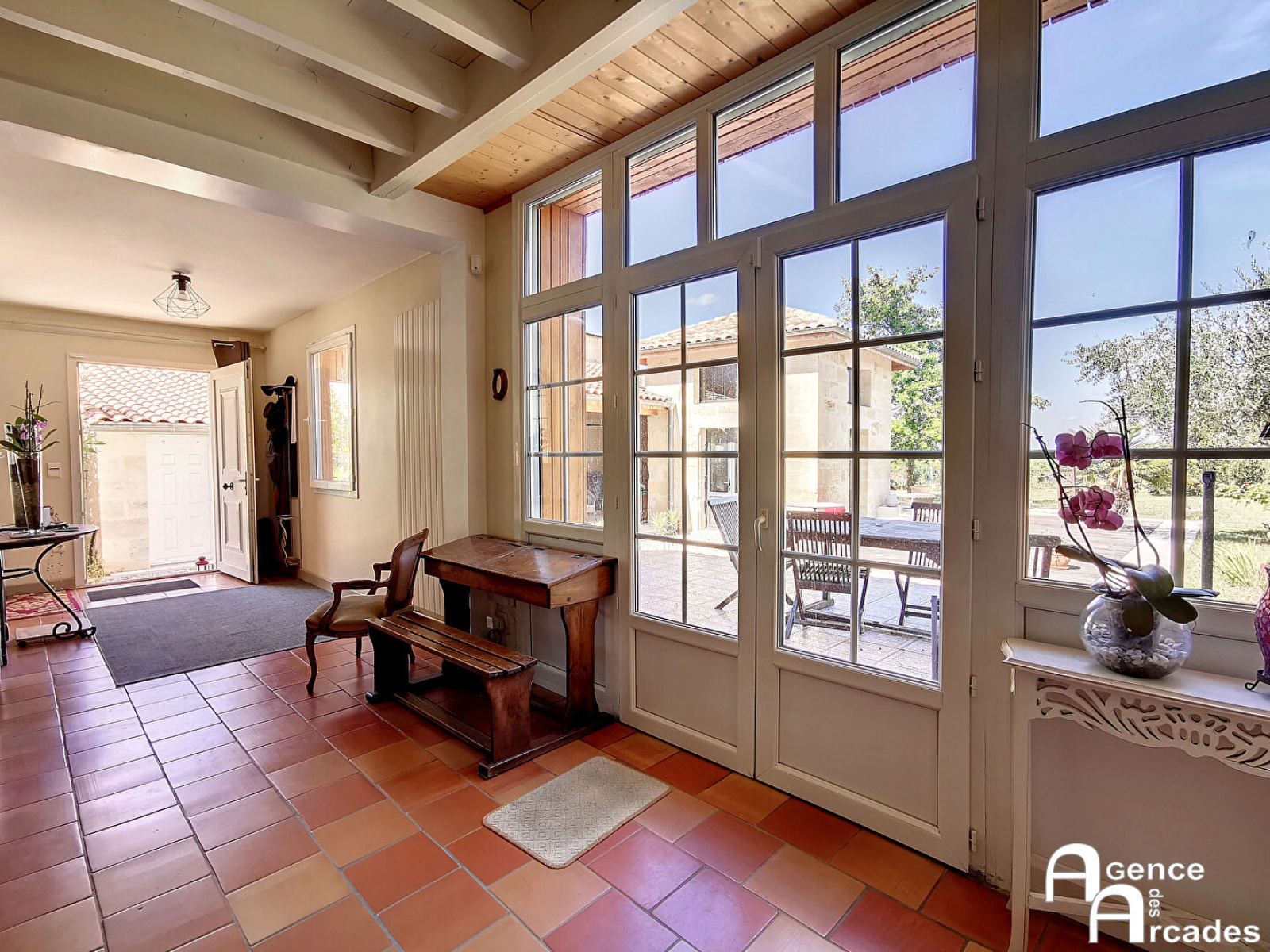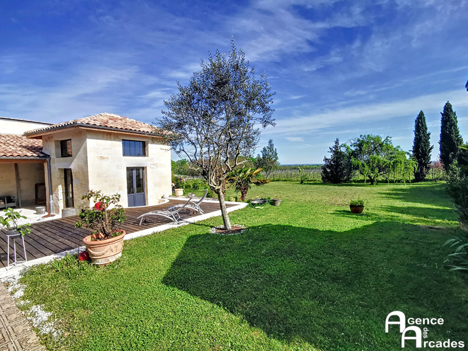 MAISON EN PIERRE avec beaucoup de cachet sur la commune de GENISSAC. La maison GIRONDINE déploie près de 200m² habitables. La maison en parfait état comprend une entrée , un salon et salle à manger, une cuisine , 5 chambres dont une en suite parentale, un bureau , 3 salles d'eau/bains . A l'exterieur, parcelle de plus de 1300m² avec espace spa clos/couvert et un abri en pierre couvert . Située dans un petit village proche de Libourne et à 30min de Bordeaux et 10min de Branne. EXCLUSIVITE AGENCE DES ARCADES