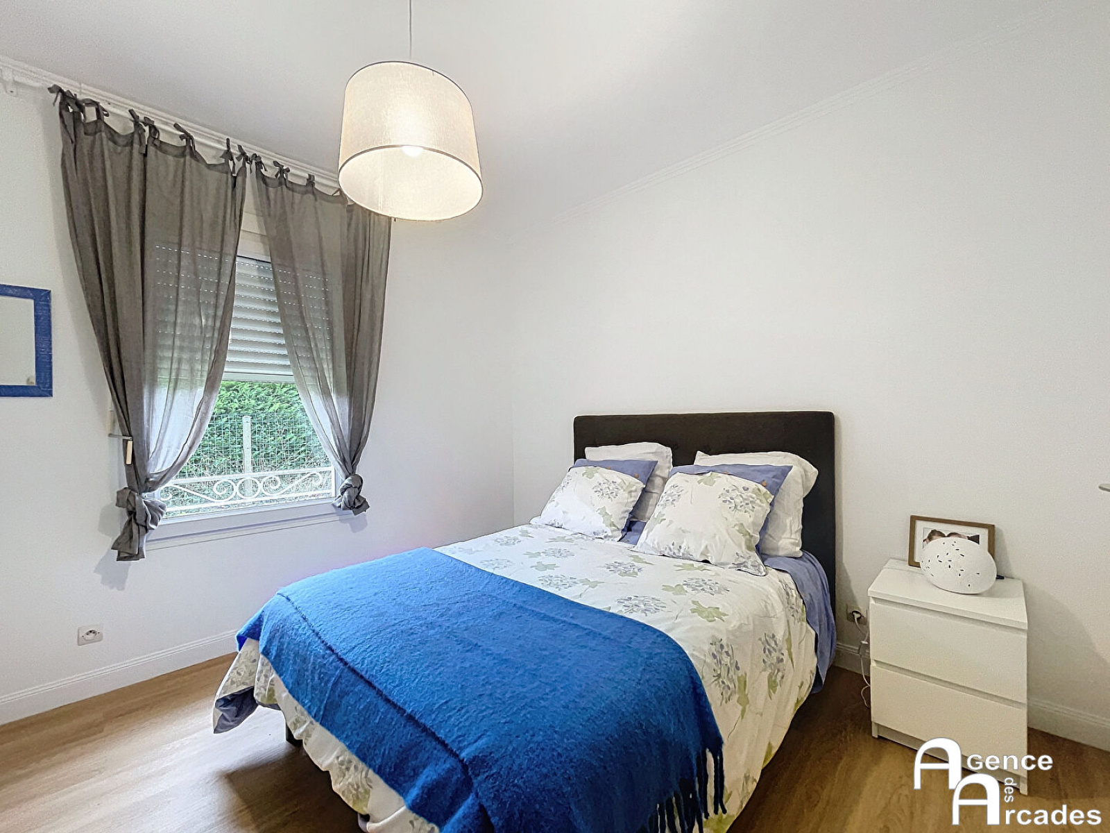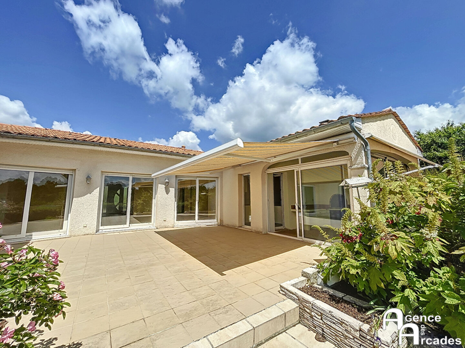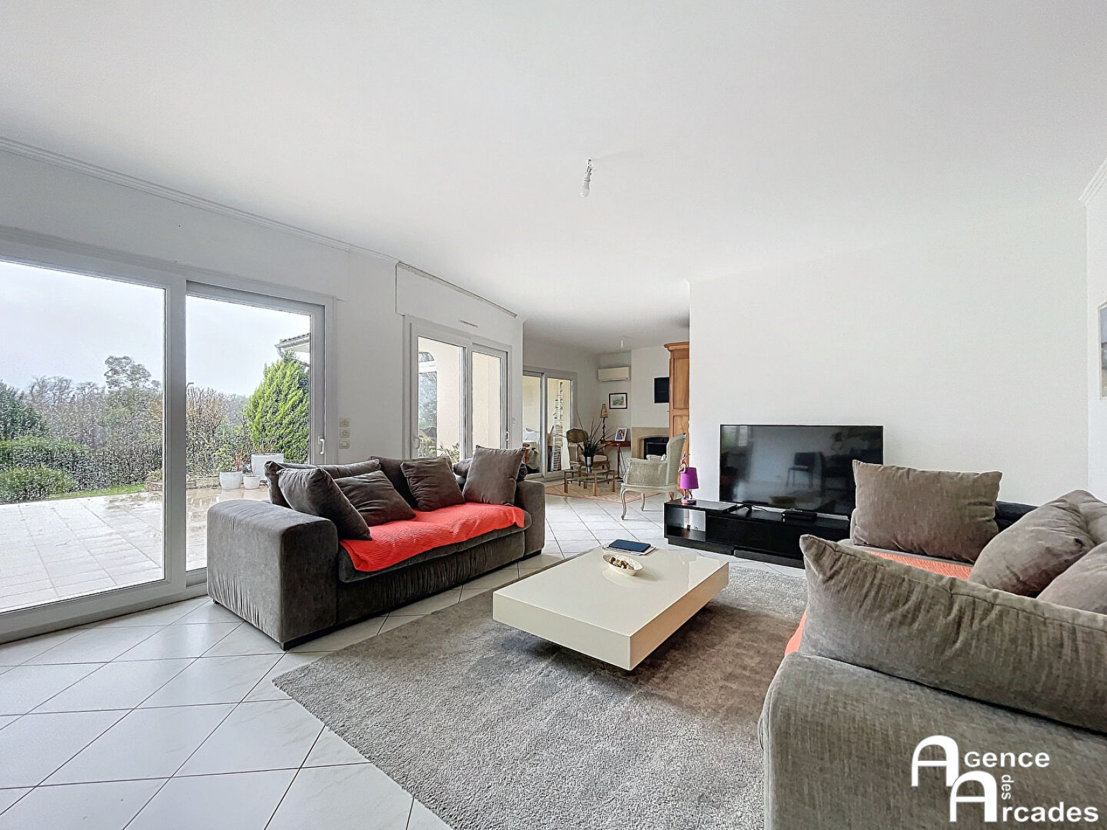 BELLE MAISON FAMILIALE avec une vue magnifique sur les bois, constituée d'un très grand espace de vie de près de 70 m², d'une cuisine équipée avec cellier indépendant de 20 m², d'une chambre parentale de 42 m² avec bureau - bibliothèque intégré, de deux autres chambres avec une salle d'eau dans chaque chambre, d'un toilette invité, d'un bureau indépendant de 10 m² pouvant être la quatrième chambre. De part et d'autre de l'espace vie, deux grandes vérandas : une cuisine d'été avec barbecue d'un côté de 15 m², un espace couvert avec une petite piscine en dessous (à remettre en fonctionnement) de 21 m² de l'autre côté. Cette maison possède un très grand garage en sous sol de 137 m² avec une cave à vins existante. Une grande terrasse de 46 m² avec deux stores banne et un car-port de 20 m² complètent ce bien sur un beau terrain sans vis à vis de 1200 m², terrain piscinable. Photo cuisine virtuelle. Bien rare sur ce secteur, proche de tous commerces. Visite Virtuelle à disposition. ARCADES PROPRIETES. (2.98 % d'honoraires TTC à la charge de l'acquéreur.)