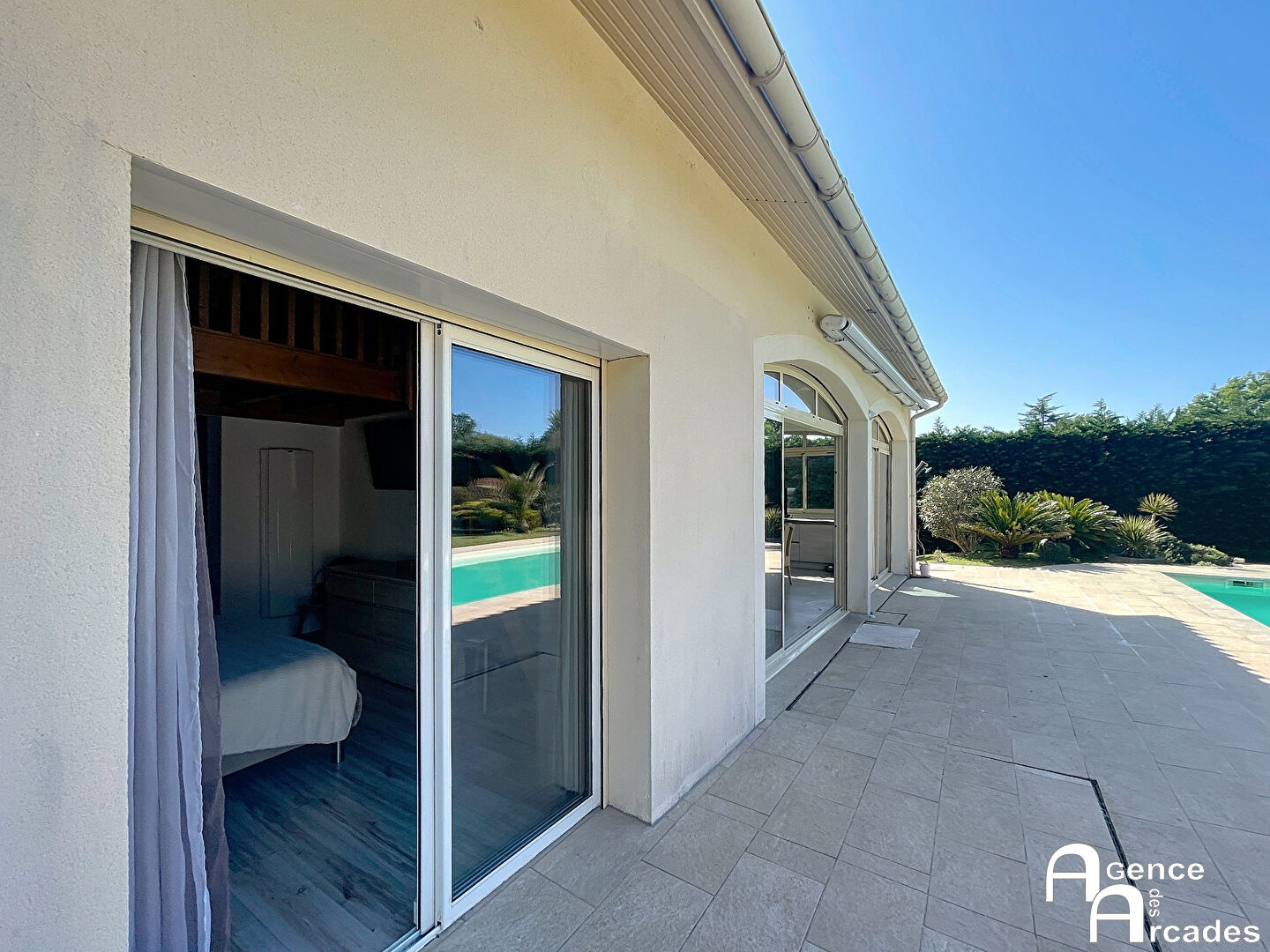 GRANDE MAISON FAMILIALE de caractère, proche Bordeaux, calme et verdure. Située à seulement 20 minutes de Bordeaux et 15 minutes de Saint-André-de-Cubzac, cette belle propriété conjugue espace, luminosité et confort dans un environnement privilégié, à l'abri des regards. Le rez-de-chaussée s'articule autour d'un vaste espace de vie comprenant salon, salle à manger et cuisine ouverte, baigné de lumière grâce à son exposition Est-Ouest et offrant une vue dégagée sur l'espace piscine extérieure. Une suite parentale complète ce niveau, avec salle de bains (douche et baignoire), dressing en mezzanine, ainsi qu'une bibliothèque-salle de jeux au caractère chaleureux. À l'étage, vous trouverez quatre grandes chambres, dont une actuellement aménagée en bureau, ainsi qu'une salle d'eau et un toilette indépendant. Un sous-sol total d'environ 100 m² offre de multiples possibilités : rangements, atelier, salle de sport ou espace loisirs. À l'extérieur, le parc paysager et arboré de près de 2 900 m² accueille une agréable pergola, un car-port et de nombreux stationnements. L'ensemble se distingue par son calme absolu, son absence de vis-à-vis et sa proximité avec toutes les commodités. Une propriété rare sur le secteur, alliant sérénité, espace et élégance. Cette maison peut convenir pour des professions libérales ou associations. ARCADES PROPRIÉTÉS