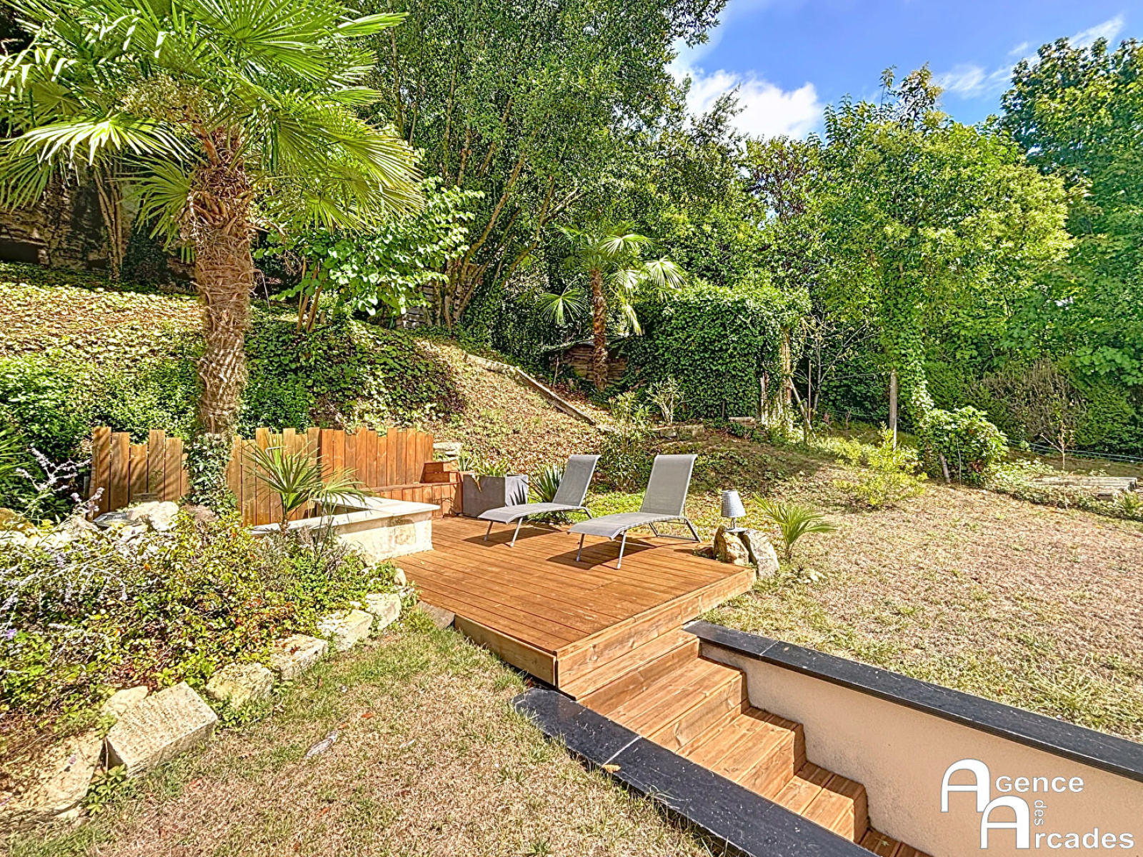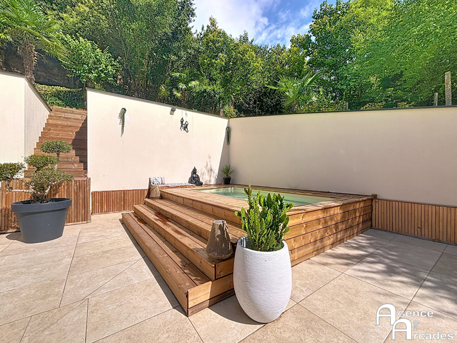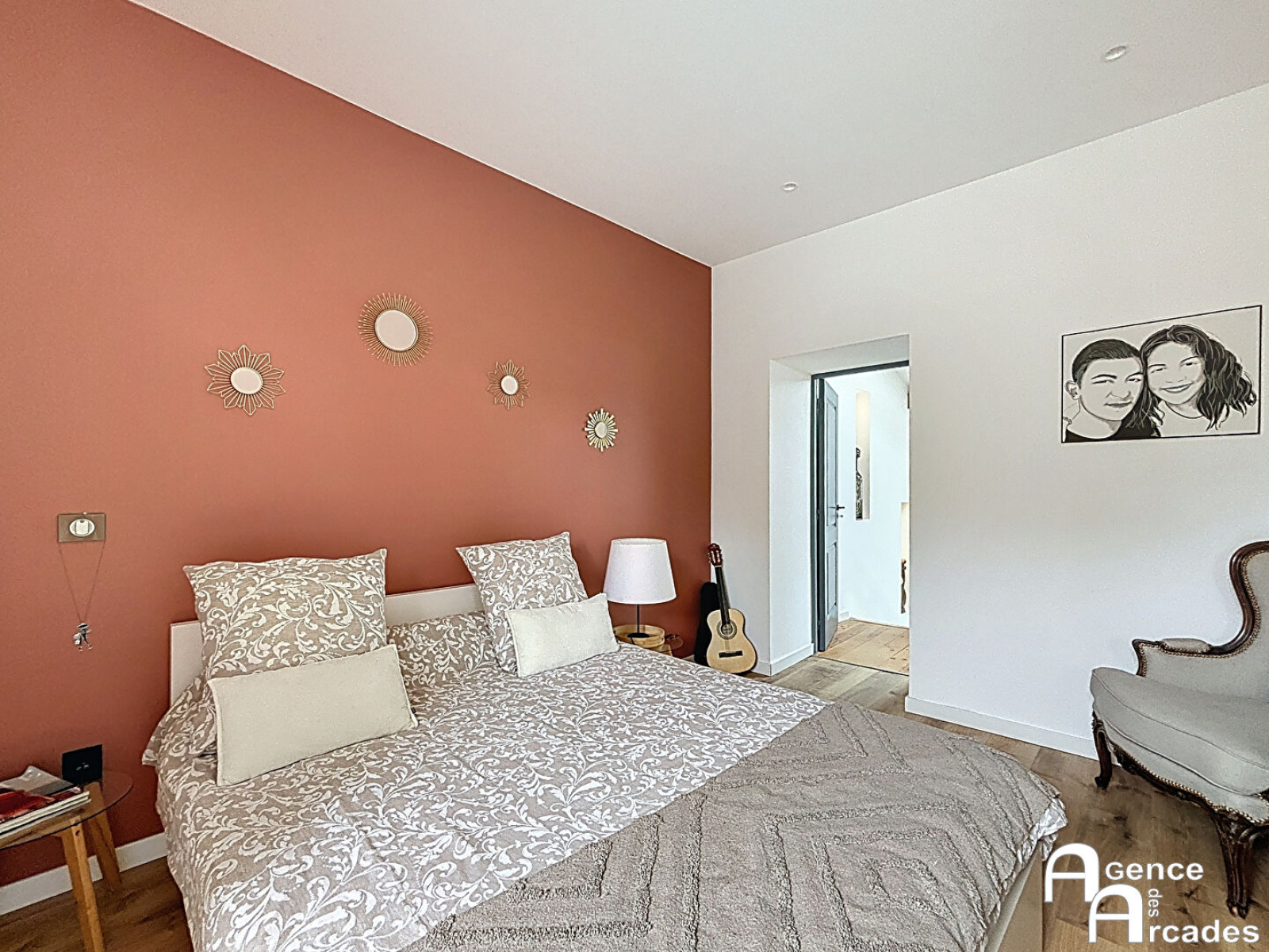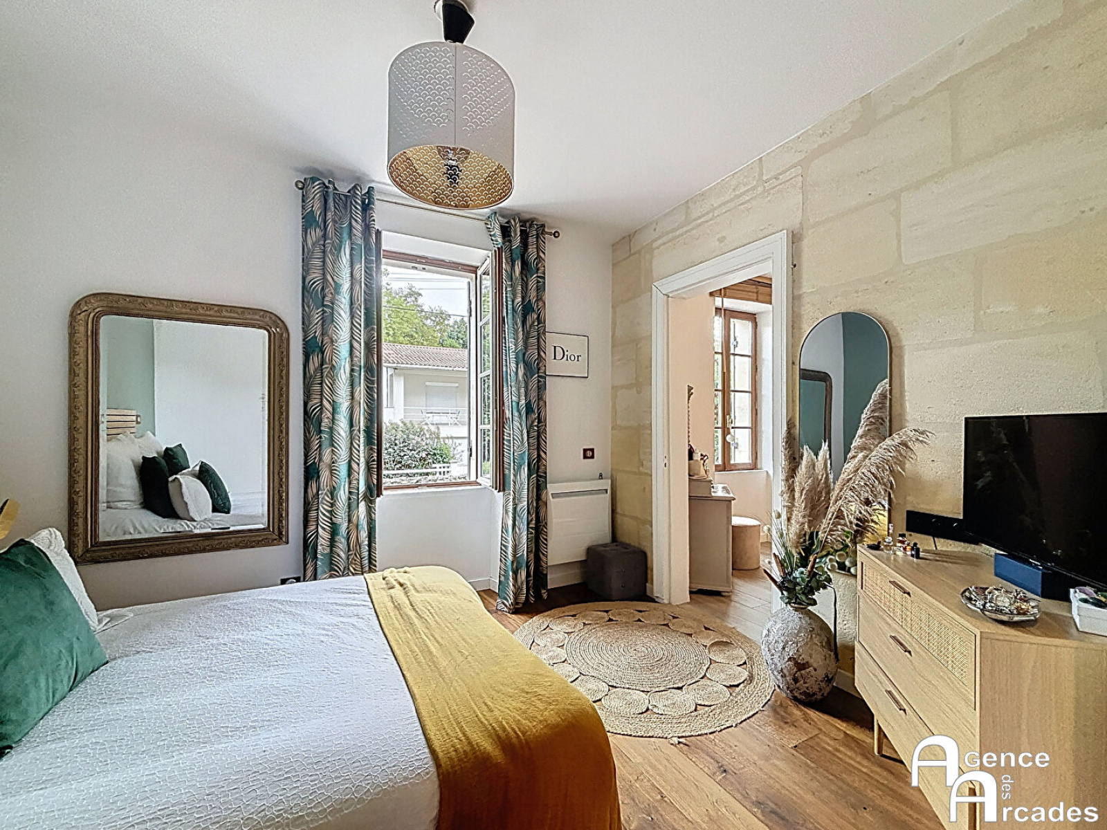 A seulement 20 mn de BORDEAUX - Elégante bâtisse en pierre d'environ 215 m² entièrement rénovée de matériaux et de prestations de grandes qualités. Alliant charme et modernité, offrant un cadre de vie exceptionnel et situé au coeur d'un environnement calme et recherché, ce bien est composé d'une entrée d'envergure menant sur un vaste salon-salle à manger lumineux à la décoration raffinée. Celui-ci est suivi d'une grande cuisine desservant deux terrasses dont l'une ouvre sur un jardin bucolique et atypique laissant découvrir son lavoir ainsi qu'une carrière souterraine. Une magnifique suite parentale retirée complète cet espace en rez-de-chaussée. L'étage comprend un vaste patio qui surplombe la pièce de vie laissant admirer le raffinement de la pièce. Deux grandes suites indépendantes avec salle d'eau privatives complètent l'espace nuit. Un piscine hors-sol magnifiquement mise en en valeur au style balinais complète ce bien au style unique faisant de lui un bien rare. Proche des commerces et de toutes commodités - AGENCE DES ARCADES